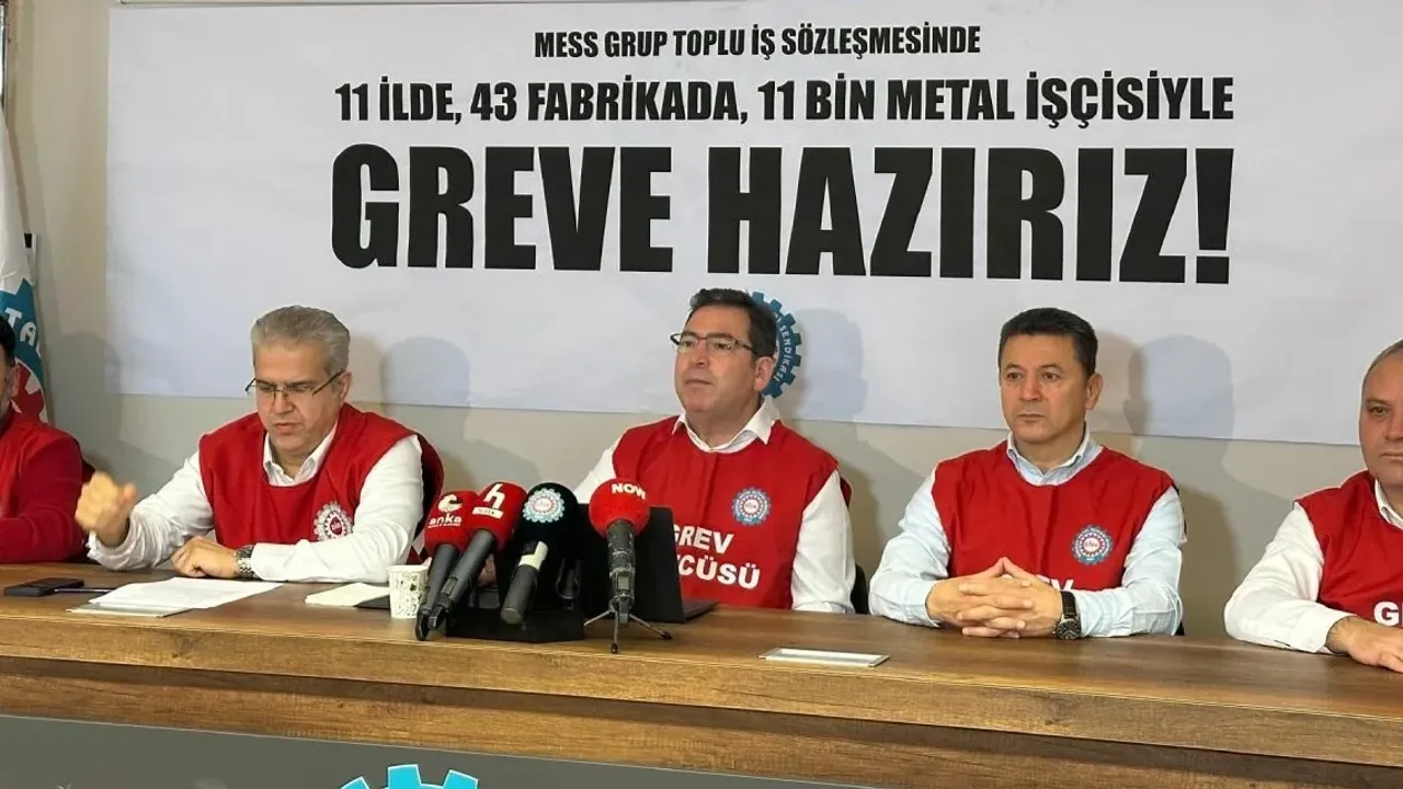 Metal işkolunda yürütülen grup toplu iş sözleşmesi (TİS) sürecinde grev aşamasına gelindi. Birleşik Metal-İş Sendikası, arabuluculuk raporunun sendikaya ulaşmasının ardından 31 işletmeye bağlı 43 fabrikada grev kararlarını kamuoyuna açıkladı. İstanbul Kadıköy'de bulunan Birleşik Metal-İş Genel Merkezi’nde düzenlenen basın toplantısında konuşan Genel Başkan Özkan Atar, MESS’in tekliflerinin “sefalet dayatması” olduğunu söyledi.