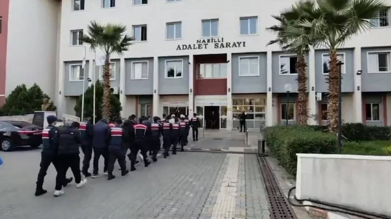 Geniş güvenlik kapsamında Nazilli Adliyesine sevk edilen 19 şüpheli mahkemeye çıkarıldı. Şüpheliler hakkında ‘suç işlemek amacıyla örgüt kurma’, ‘nitelikli dolandırıcılık’, ‘kişisel verilerin hukuka aykırı ele geçirilmesi’ ve ‘tehdit’ suçlarından işlem yapıldı. Şüphelilerden 14’ü tutuklanarak Nazilli E Tipi Kapalı Ceza İnfaz Kurumuna gönderilirken, 5 kişi adli kontrol şartıyla serbest bırakıldı. Yurt dışına kaçan şüpheli için ise yakalama kararı çıkarıldı.