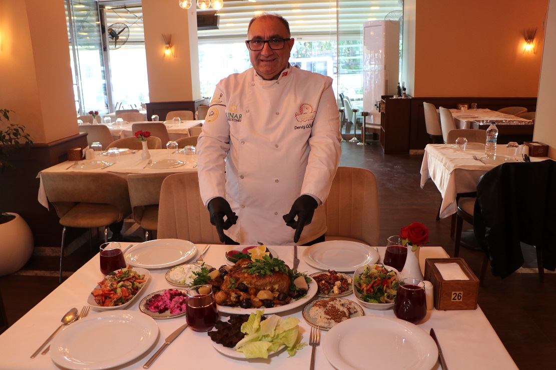 Hindinin yılbaşı sofrası için bir simge haline geldiğini ancak bölge halkının damak tadına uymadığını belirten Derviş Göçmen, “Hindi eti biraz sert olduğundan çok tercih edilmiyor. Yılbaşında da bu bölgede genellikle hindi değil tavuk dolması tercih ediliyor. Tavuk fırına verildiğinde baharatlı pilavıyla birlikte çok daha lezzetli oluyor. Yoğurtlu mezeler, közlenmiş biber ve salata da bu lezzete yakışıyor ve menüyü tamamlıyor” diye konuştu.