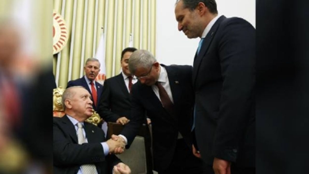 Siyasi parti liderlerinin, Cumhurbaşkanı Recep Tayyip Erdoğan ile Meclis'in açılış resepsiyonundaki fotoğrafıyla ilgili tartışmalara ilişkin Davutoğlu, şunları söyledi: