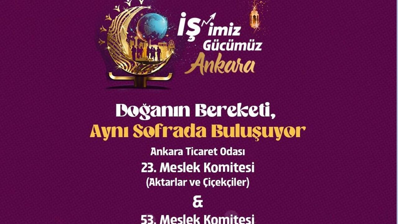 Ankara Ticaret Odası bünyesinde faaliyet gösteren 23. Meslek Komitesi (Aktarlar ve Çiçekçiler) ile 53. Meslek Komitesi (Peyzaj, Çevre Düzenleme ve Yapısal Faaliyetler), meslek mensuplarını ve davetlileri iftar programında buluşturacak.