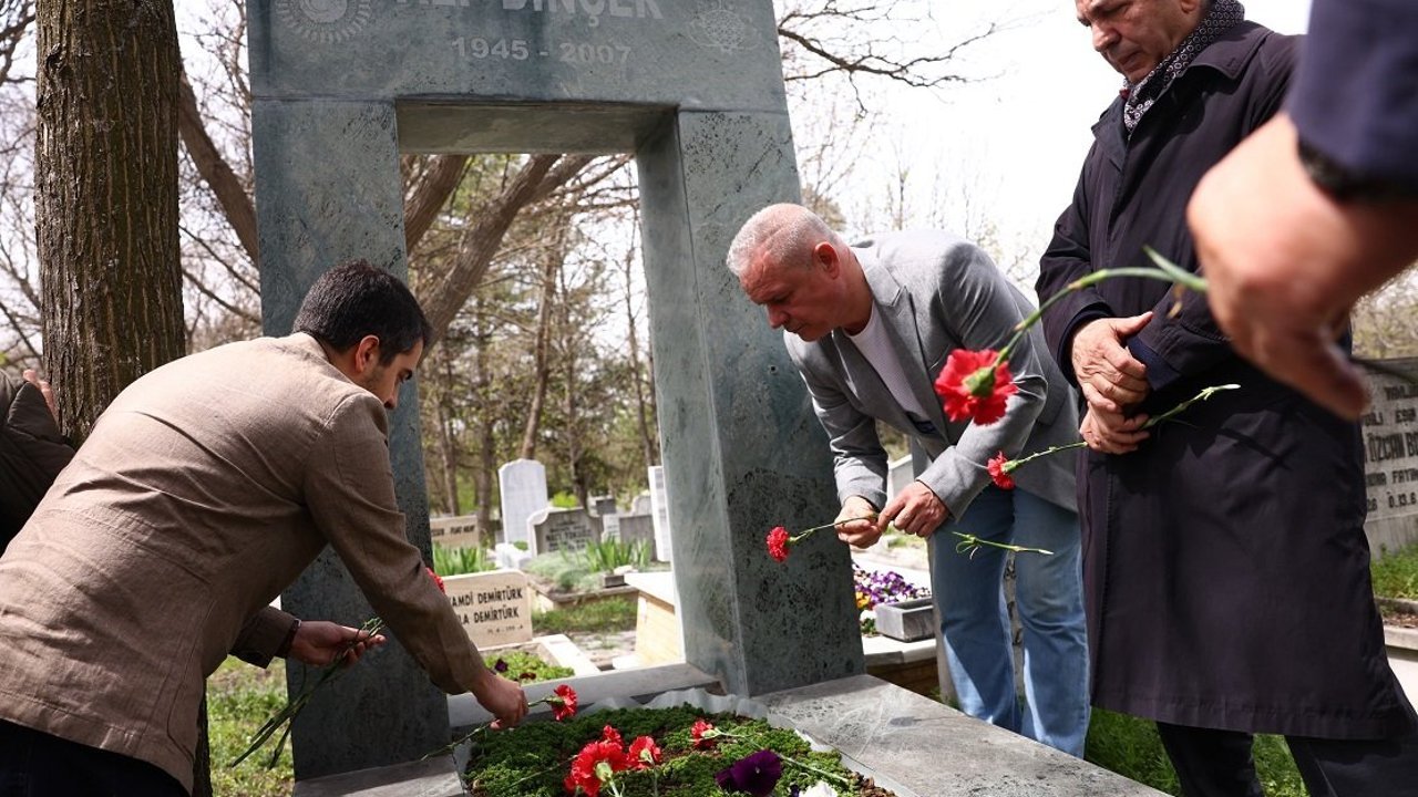 Tören kapsamında dualar okunurken, Hüseyin Can Güner ve katılımcılar Ali Dinçer ile kardeşi Tahir Dinçer’in mezarına kırmızı karanfiller bıraktı.