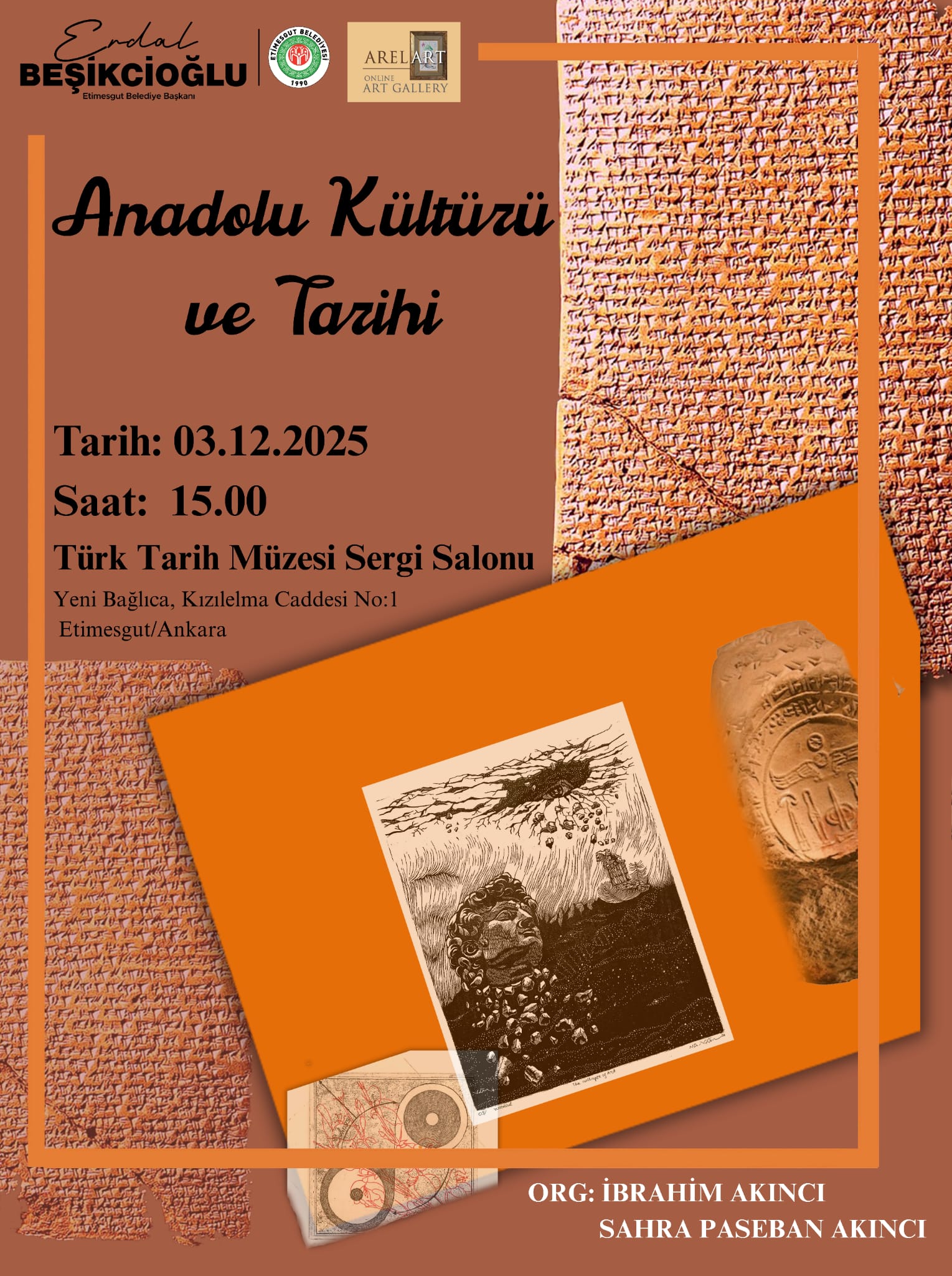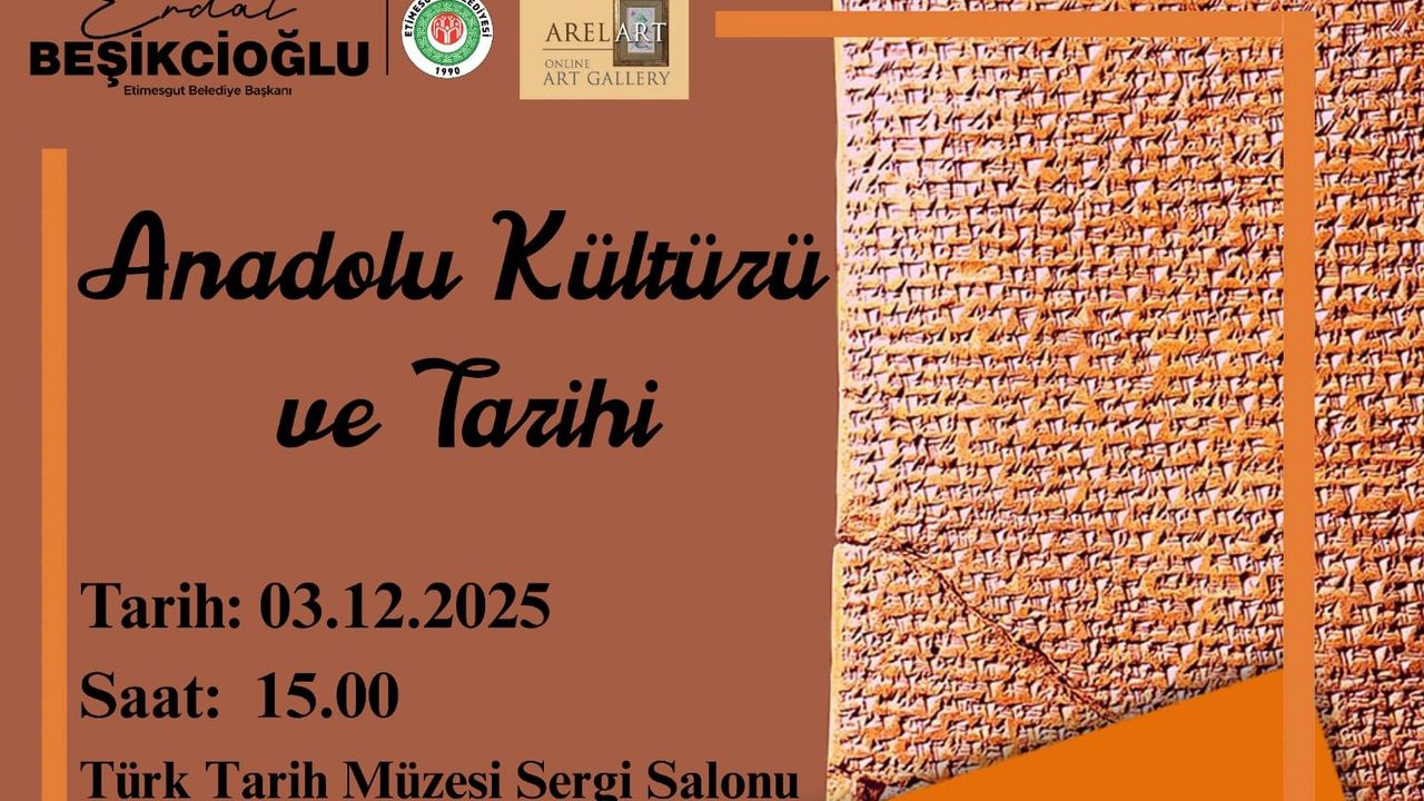 Etimesgut Belediyesi’nin destekleriyle, Arel Art Online Art Gallery katkılarıyla hazırlanan “Anadolu Kültürü ve Tarihi” etkinliği, Bugün Ankara’da gerçekleştirilecek. Program, Anadolu’nun tarihsel belleğini ve kültürel izlerini sanat eserleri üzerinden görünür kılmayı amaçlıyor.
