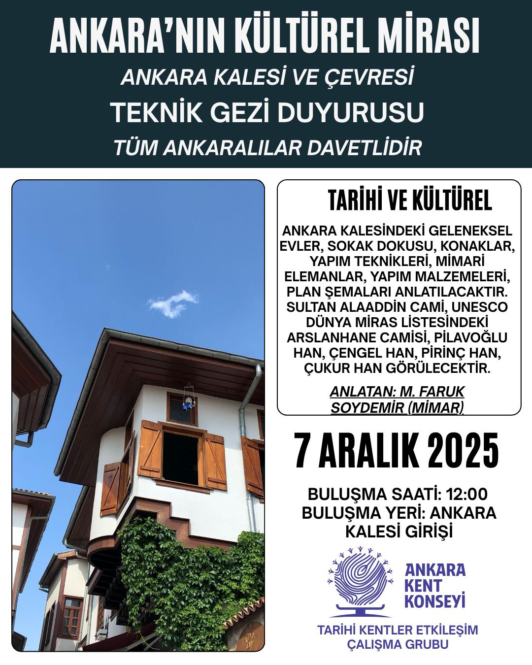 Tüm Ankaralıların davetli olduğu gezi, 7 Aralık 2025 Pazar günü saat 12.00’de Ankara Kalesi girişinde başlayacak.
