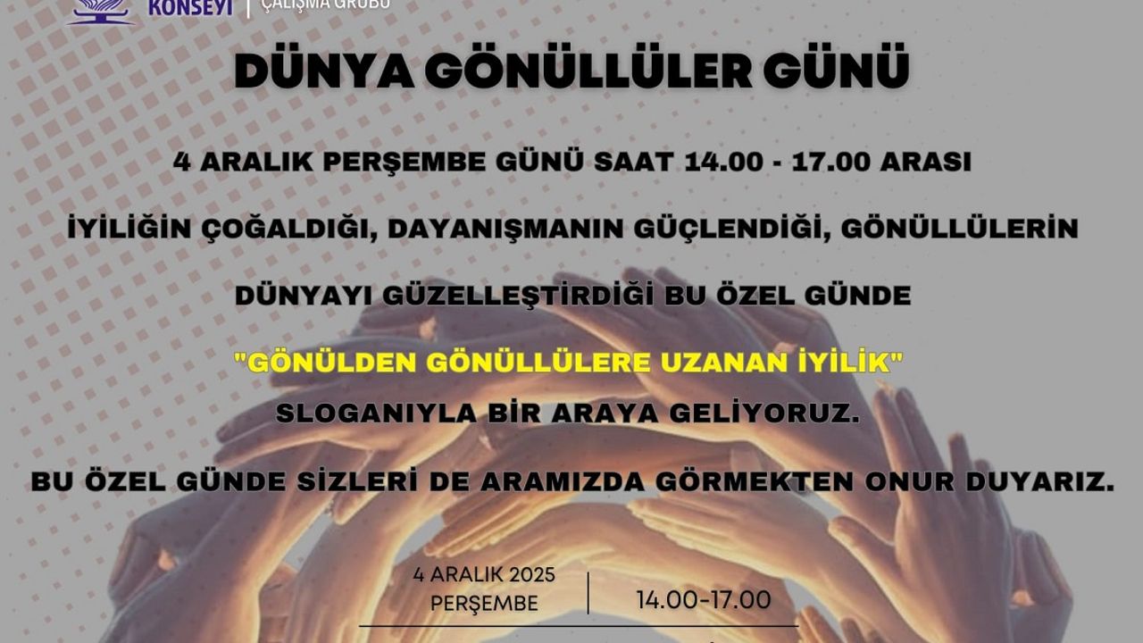 Ankara Kent Konseyi STK Proje Destek Çalışma Grubu, Dünya Gönüllüler Günü kapsamında gönüllüleri bir araya getirecek özel bir etkinlik düzenliyor. “Gönülden Gönüllülere Uzanan İyilik” temasıyla gerçekleştirilecek program, iyilik ve dayanışma kültürünü büyütmeyi, gönüllülük ruhunu daha geniş kitlelere ulaştırmayı amaçlıyor.