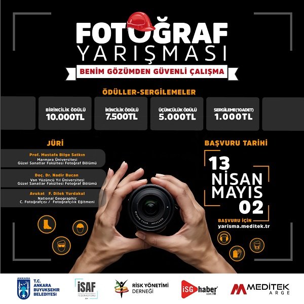 Ankara Büyükşehir Belediyesi Sağlık İşleri Daire Başkanlığı öncülüğünde; İş Sağlığı ve Güvenliği Dernekleri (İSGFED), Risk Yönetimi Derneği, İSG Haber (Kariyer Enstitüsü) ve MEDİTEK ARGE AŞ iş birliğiyle hayata geçirilen “Gözümden Güvenli Çalışma” fotoğraf yarışması için başvurular alınmaya başladı.