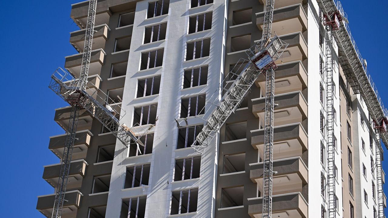 Ege Mahallesi'nde sabah saatlerinde yapımı süren 15 katlı inşaatın 12'nci katındaki yük asansörü, henüz belirlenemeyen nedenle ikiye ayrıldı.