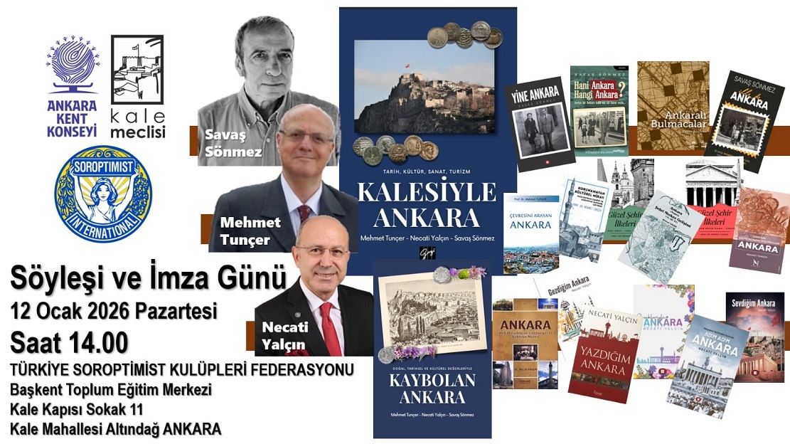 Ankara Kalesi’nin tarihsel, kültürel ve sanatsal zenginliğini ele alan “Tarih, Kültür, Sanat, Turizm Kalesiyle Ankara” adlı kitap, yazarları Savaş Sönmez, Necati Yalçın ve Prof. Dr. Mehmet Tunçer’in katılımıyla düzenlenen imza günü ve söyleşide okurlarla buluştu. Etkinlikte Ankara ve Ankara Kalesi üzerine keyifli bir sohbet gerçekleştirildi.