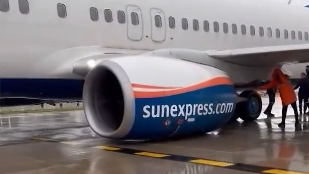 Antalya Havalimanı'nda saat 15.30 sıralarında meydana gelen olayda Sunexpress Havayollarına Antalya-Gaziantep seferini yapan uçağın kalkış öncesi taxi ilanında seyrederken henüz bilinmeyen bir nedenle sol kanatta bulunan tekeri yerinden çıktı.