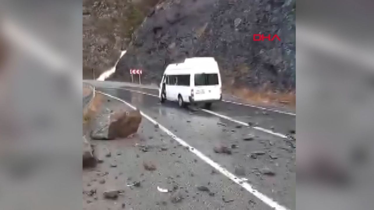 Olay, sabah saatlerinde Artvin-Borçka kara yolunun İbrikli mevkisinde meydana geldi. Yamaçtan kopan kaya düştüğü yolda ilerleyen sürücüsünün ismi ve plakası bilinmeyen minibüse isabet etti. Kaya, ön koltuklarında 3 kişinin bulunduğu minibüsün tavanını parçalayarak yolcu koltuğu üzerine düştü. Araçta arka koltuklarda yolcu olmaması olası can kaybı ve yaralanmamın önüne geçti. Bir süre ulaşama kapanan yolda, ekipler önlem alarak iş makineleriyle temizlik çalışması başlattı. Çalışmaların tamamlanmasının ardından yol yeniden kontrollü olarak ulaşıma açıldı.