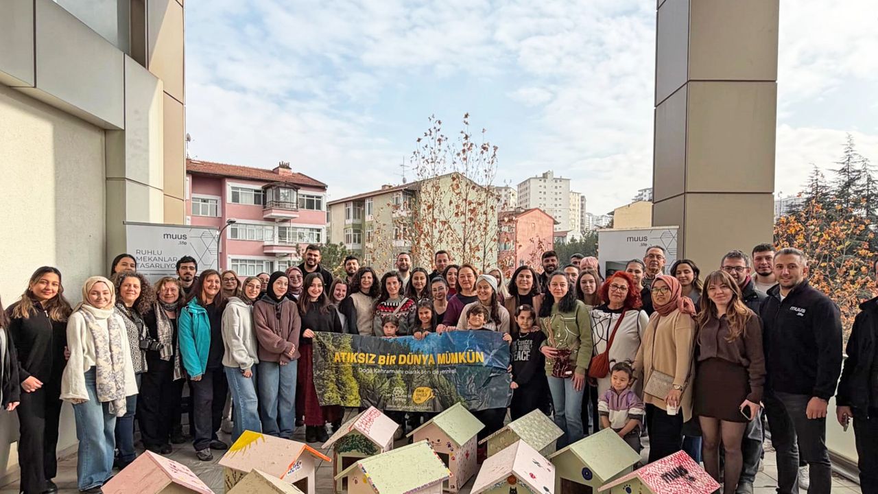 Çankaya Belediyesinin sıfır atık ve sürdürülebilir çevre politikaları doğrultusunda düzenlenen etkinliğe 65 kişi katıldı. Katılımcılar, atık ahşap malzemeleri yeniden değerlendirerek kuşlar için yuva yaptı. Geri dönüşümün önemine dikkat çeken ve doğadaki canlılara destek olmayı amaçlayan atölye, katılımcıların beğenisini topladı. Atölye çalışması sonucunda üretilen 10 kuş evi, gönüllüler tarafından teslim alınarak kendi binalarına ve mahallelerine yerleştirilmek üzere götürüldü.