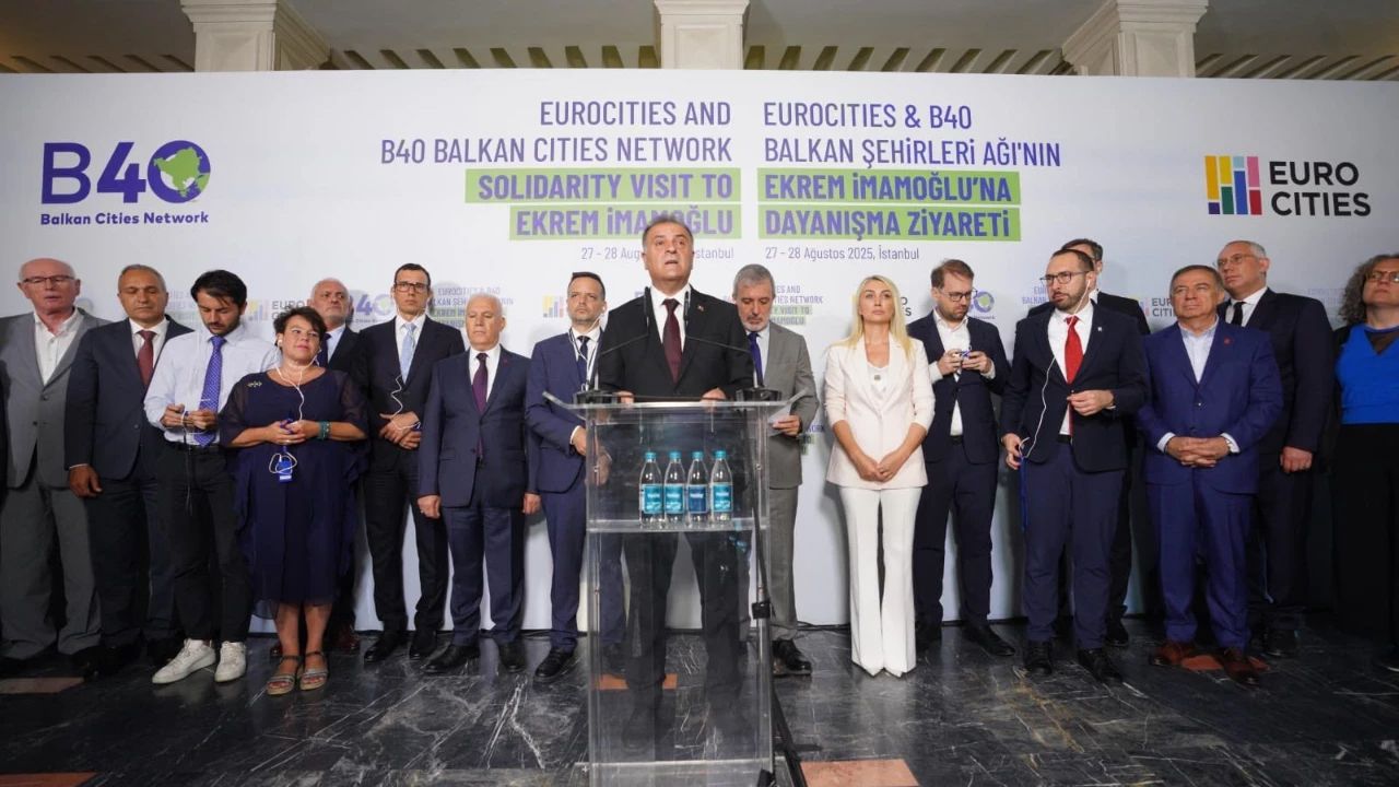 Nuri Aslan, belediye başkanlarını karşılamasının ardından yaptığı açıklamada, Avrupalı Belediye Başkanları'nın İmamoğlu'nu Silivri'de ziyaret etme talebi Adalet bakanlığı tarafından reddedildi.