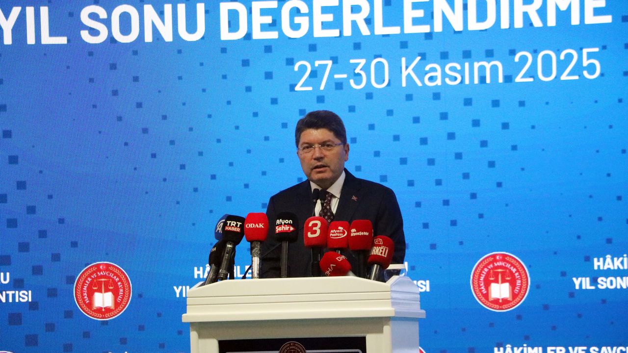 Adalet Bakanı Yılmaz Tunç, Afyonkarahisar'da gerçekleştirilen Hakimler ve Savcılar Kurulu (HSK) Yıl Sonu Değerlendirme Toplantısı'na katıldı. Konuşmasında adaletin mülkün temeli, insan onuru, temel hak ve özgürlüklerinin garantisi ve toplumsal düzenin şartı olduğundan bahseden Bakan Tunç, "Adaletin hakkıyla tecellisi hukuk devletiyle mümkündür. Demokratik hukuk devleti, anayasasıyla, kanunlarıyla hukukun üstünlüğünün tam anlamıyla tesis edildiği, yargı bağımsızlığı ve tarafsızlığının tam anlamıyla tesis edildiği bir devlettir. 2017 yılında HSK'ya üye seçimini daha demokratik hale geçirerek yargı bağımsızlığı ve tarafsızlığı adına, demokratik hukuk devleti adına önemli bir reformu hayata geçirdik. 13 üyeden oluşuyor HSK. Yargıtay'dan 3 üye, Danıştay'dan 1 üye, yükseköğretim kurullarının hukuk dallarında görev yapan öğretim üyeleri veya avukatlar arasından olmak üzere 3 üye toplam 7 üye, millet iradesinin tecelligahı olan TBMM tarafından seçiliyor. Bu seçim nitelikli bir çoğunlukla yapılıyor. Önce hem komisyonda, adalet ve karma komisyonda hem de Genel Kurul'da sadece bir partinin görüşüyle şekillenmiyor. Nitelikli çoğunluk aranıyor. Anayasa bunu emrediyor. Bir uzlaşma gerektiği vurgulanıyor. Önce 3'te 2 çoğunluk, sağlanamazsa 5'te 3 çoğunluk, o da sağlanamazsa kura ile üye belirleniyor" dedi.