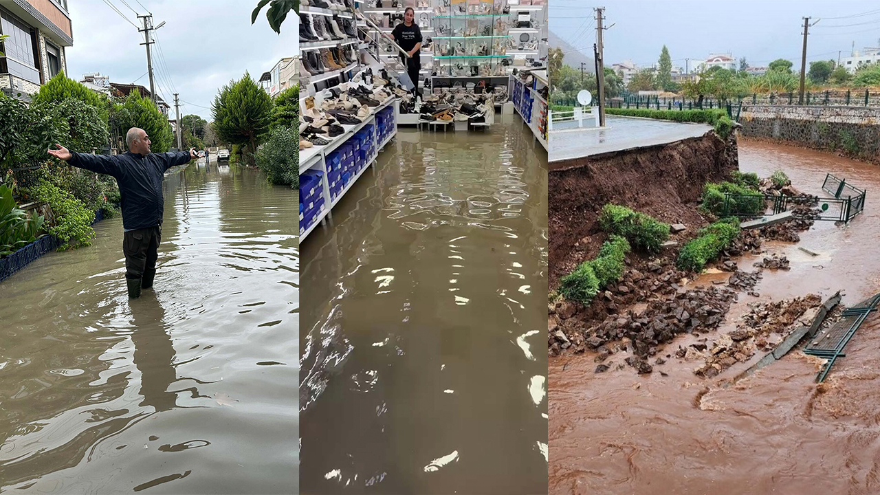 Muğla’nın Marmaris ilçesinde de gece yarısından itibaren başlayan sağanak sabah saatlerinde etkisini artırdı. Metrekareye 50 kilogram yağış düşerken, İçmeler Mahallesi’ndeki Kavacık Deresi’nin istinat duvarı çöktü. Turunç Mahallesi’nde demirli bir sürat teknesi karaya vurdu. İlçede trafik zaman zaman durma noktasına gelirken, belediye ekipleri tıkanan mazgalları açmak ve su birikintilerini tahliye etmek için çalışma yaptı.