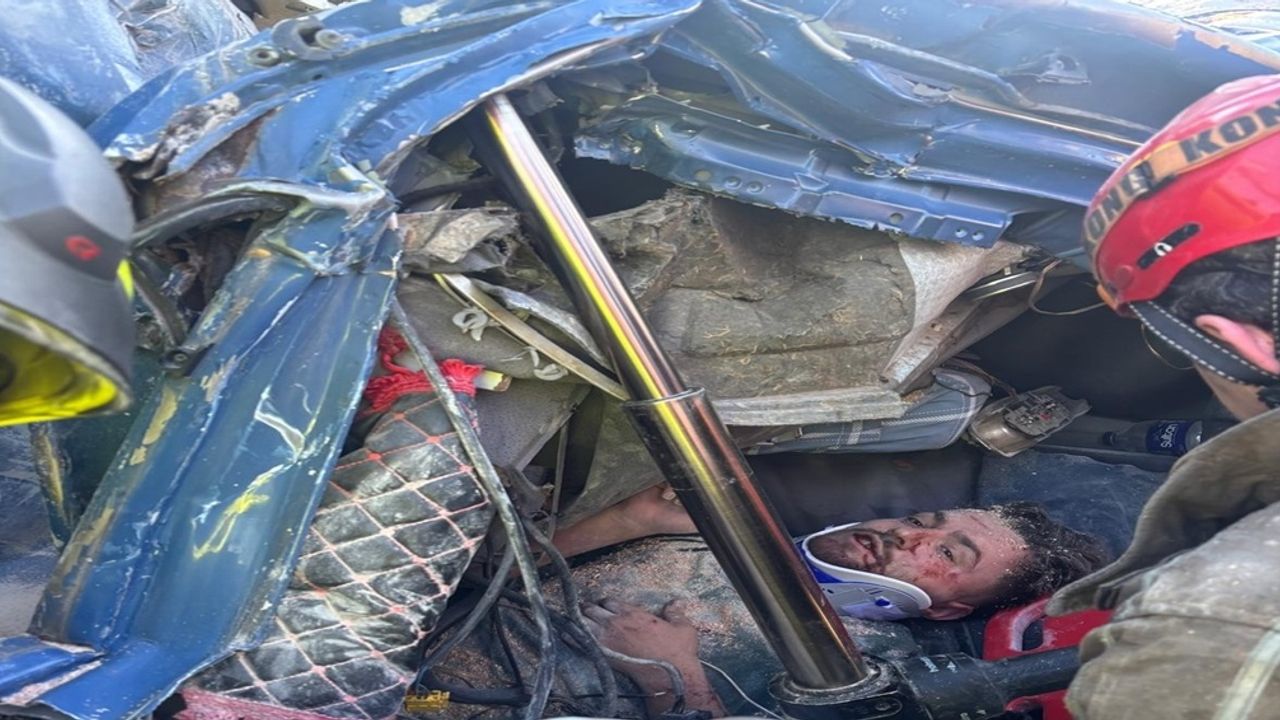 Bursa’da kontrolden çıkarak bariyerlere çarpan TIR’ın hurdaya dönen kabininde sıkışan sürücü A.U., itfaiye ekiplerinin çalışmasıyla kurtarılarak hastaneye kaldırıldı.