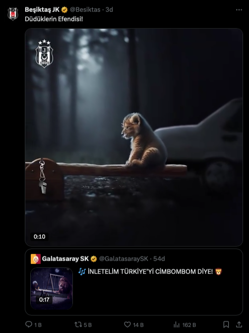 RAMS Park'ta oynanan derbi maçını 2-1 Galatasaray kazandı. Maçın ardından Beşiktaş'tan Galatasaray'a göndermeli paylaşım geldi. Beşiktaş hakem kararlarına tepki gösterdiği paylaşımda Galatasaray için "Düdüklerin efendisi" ifadelerini kullandı.