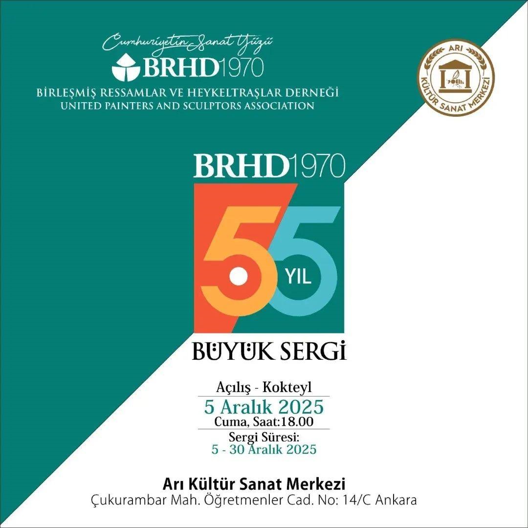 Birleşmiş Ressamlar ve Heykeltıraşlar Derneği (BRHD), 55. kuruluş yılını “Büyük Sergi” ile kutlamaya hazırlanıyor. Cumhuriyetin sanat izi sloganıyla çalışmalarını sürdüren ve 1970’ten bu yana faaliyet gösteren BRHD, bu özel yılı kapsamlı bir etkinlikle taçlandıracak. Sergi, 5 Aralık 2025 Cuma günü saat 18.00’de düzenlenecek açılış kokteyliyle sanatseverlerle buluşacak.