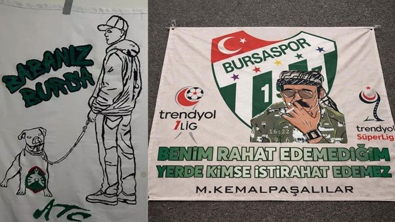 2. Lig ekiplerinden Bursaspor’un taraftar gruplarının Ankara Demirspor karşılaşması öncesinde hazırladığı pankartlar, sosyal medyada gündem oldu.