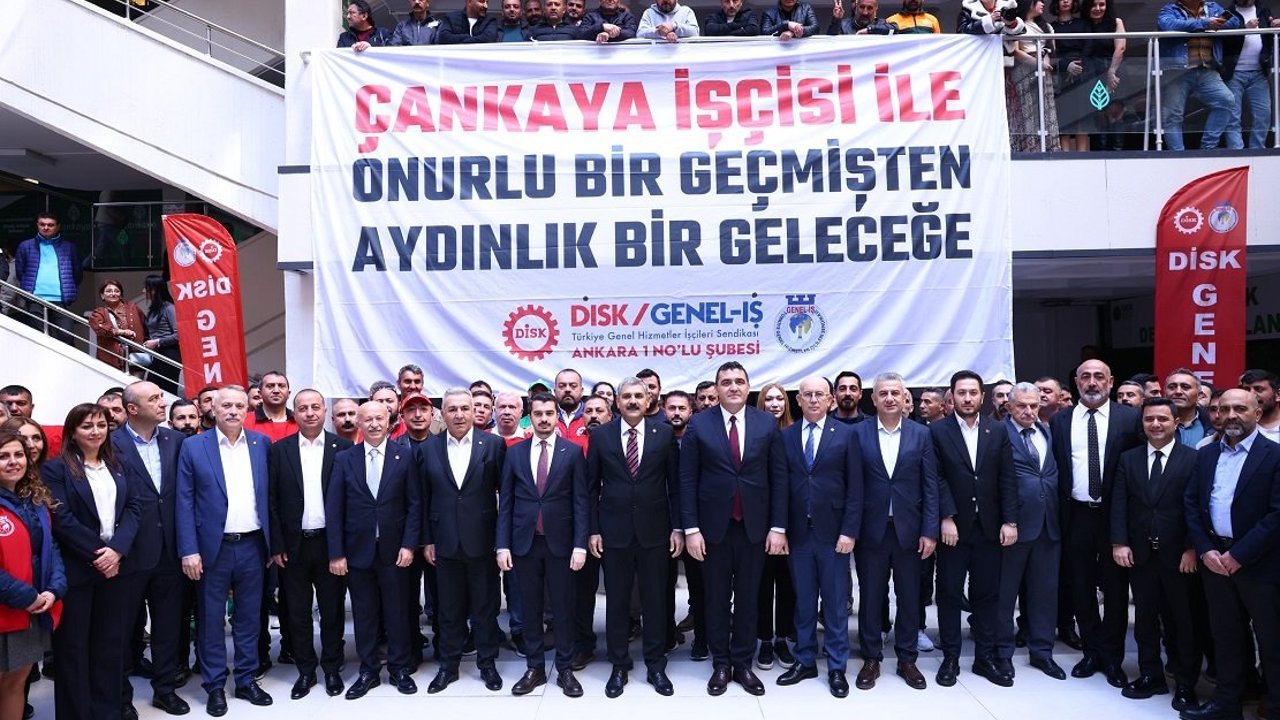 Törende Çankaya Belediye Başkanı Hüseyin Can Güner’in yanı sıra, CHP MYK Üyesi Ulaş Karasu, CHP Ankara İl Başkanı Ümit Erkol, CHP Çankaya İlçe Başkanı Ali Balta, CHP Mamak İlçe Başkanı Ali Rıza Erdek, DİSK Genel-İş Genel Başkanı Remzi Çalışkan, DİSK Genel-İş 1 Nolu Şube Başkanı İsmail Yıldırım ve belediye emekçileri hazır bulundu.