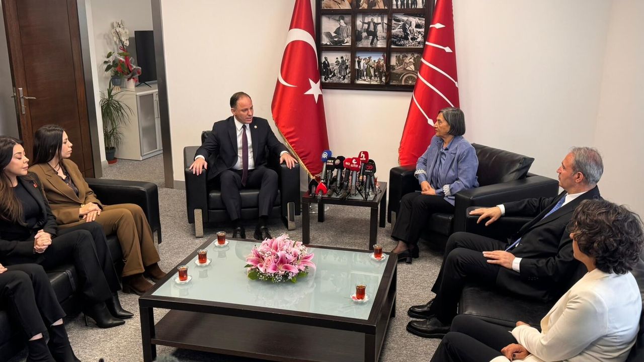 CHP Genel Başkan Yardımcısı Serkan Özcan, PM Üyesi Canan Taşer, Kadın Kolları MYK Üyesi Ceyda Kaya, Gençlik Kolları MYK Üyesi Irmak Bal'dan oluşan heyet, DEM Parti Eş Genel Başkan Yardımcısı Öztürk Türkdoğan, Mersin Milletvekili Ali Bozan ve PM Üyesi Zeyno Bayramoğlu tarafından ağırlandı.