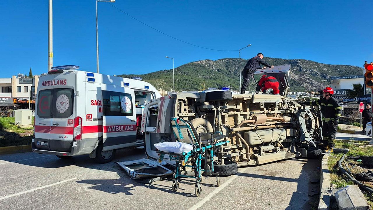 Kaza, saat 10.00 sıralarında Ortakent Bayraklı Kavşağı'nda meydana geldi. Bodrum Devlet Hastanesi'ne hasta taşıyan ve sirenleri açık olan 48 NB 680 plakalı ambulansın sürücüsü, kavşakta önüne çıkan cipe çarpmamak için manevra yaptı. Manevra sırasında ambulans yola devrildi.