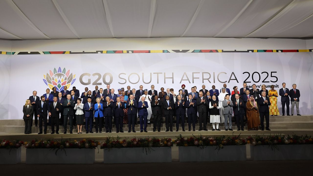 Johannesburg Expo Center'da devam eden zirvenin "Kimseyi Geride Bırakmadan Kapsayıcı ve Sürdürülebilir İktisadi Büyüme: Ekonomilerin İnşası, Ticaretin Rolü, Kalkınmanın Finansmanı ve Borç Yükü" başlıklı oturumunun ardından aile fotoğrafı çekimine geçildi.