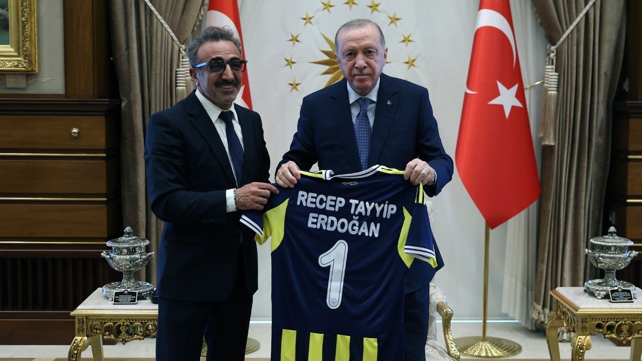 Ulukaya, Cumhurbaşkanı Erdoğan'a adının yazılı olduğu Fenerbahçe forması hediye etti.