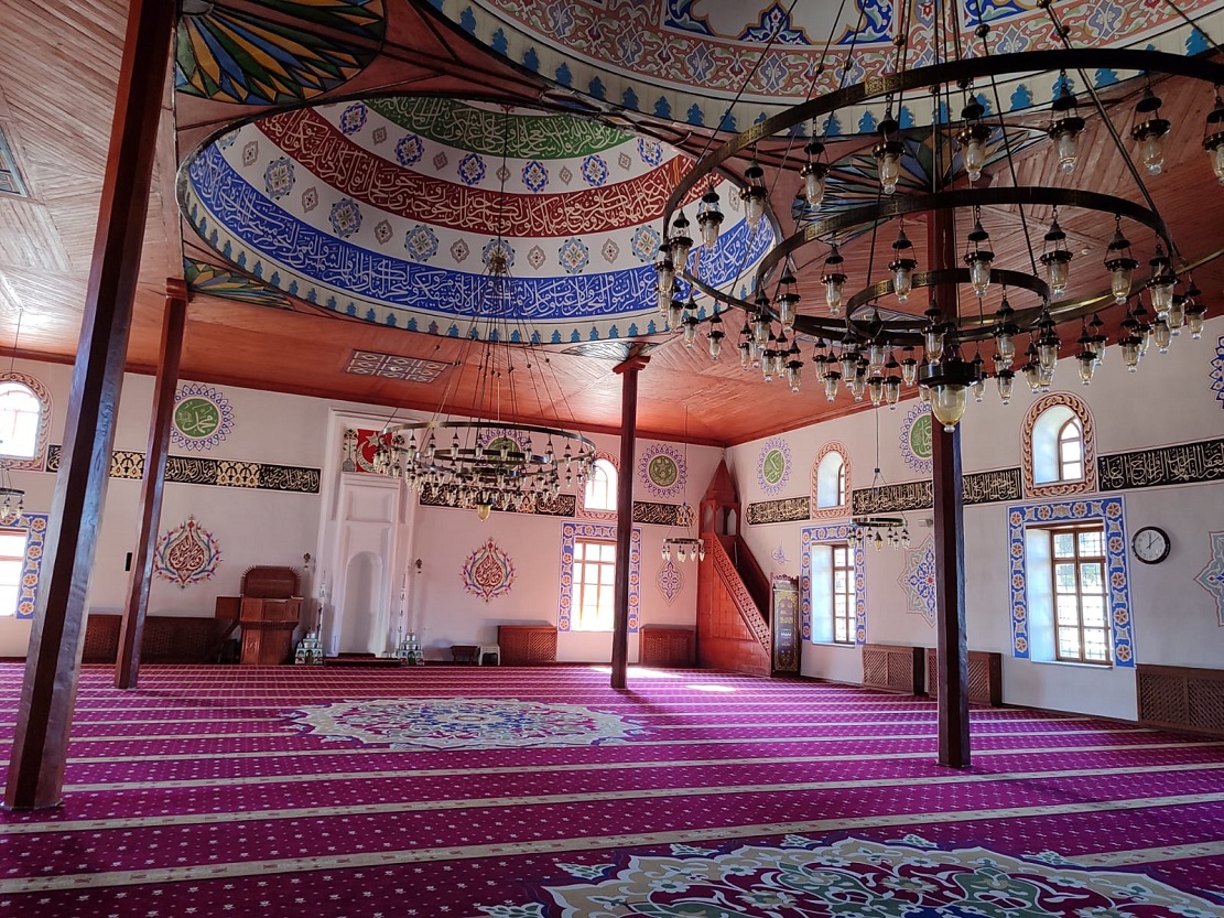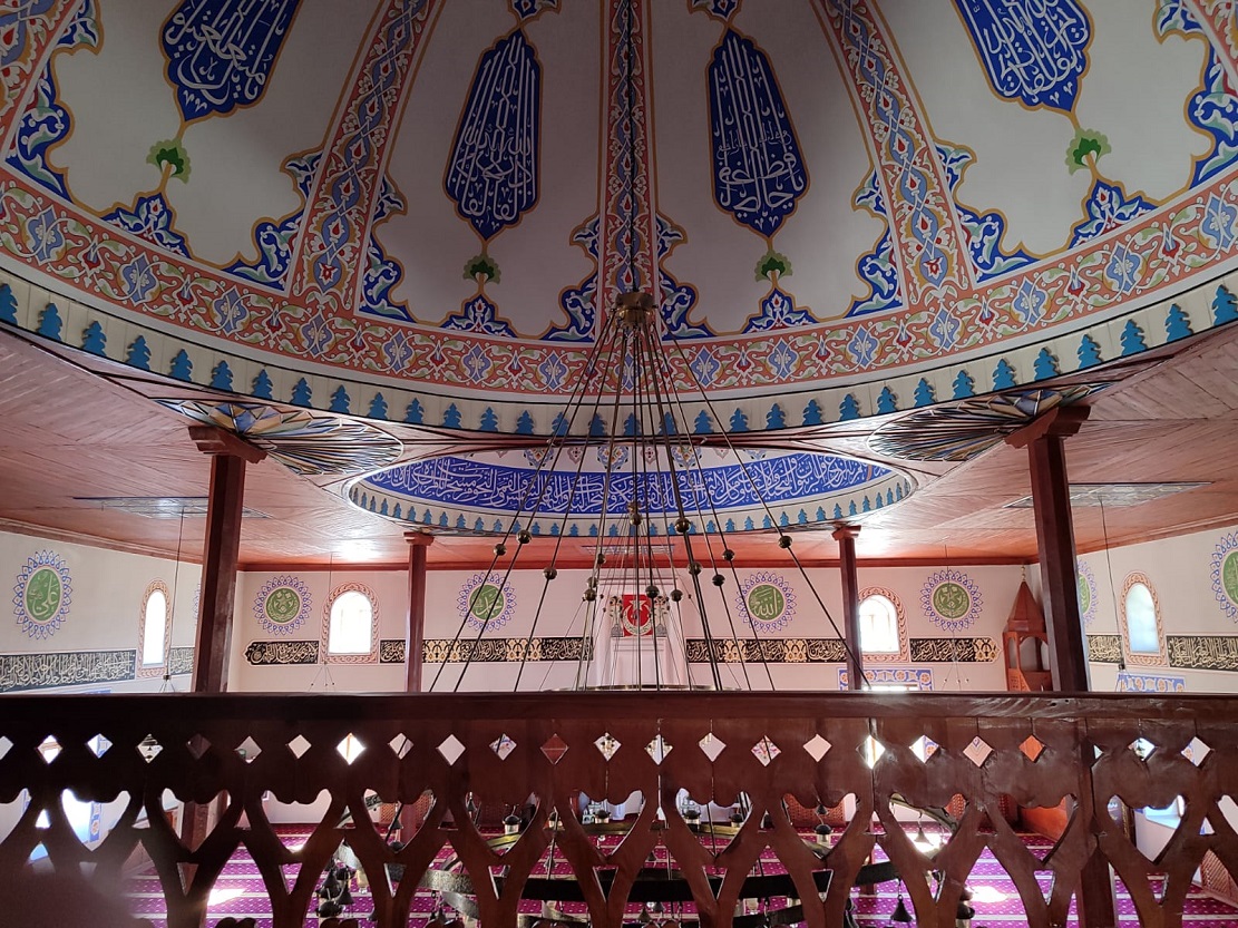 Caminin harem bölümü, iç içe geçmiş iki sıra ahşap direkle üç ayrı bölüme ayrılıyor. Orta sahın, diğer bölümlere göre daha geniş tutulmuş ve üç sıra kubbe ile örtülmüşken; yan kısımlar düz ahşap tavanla kaplanmıştır. Kuzey kısmında yer alan kadınlar mahfili, yine ahşap direklerle taşınarak yapıya geleneksel bir görünüm kazandırılmıştır.