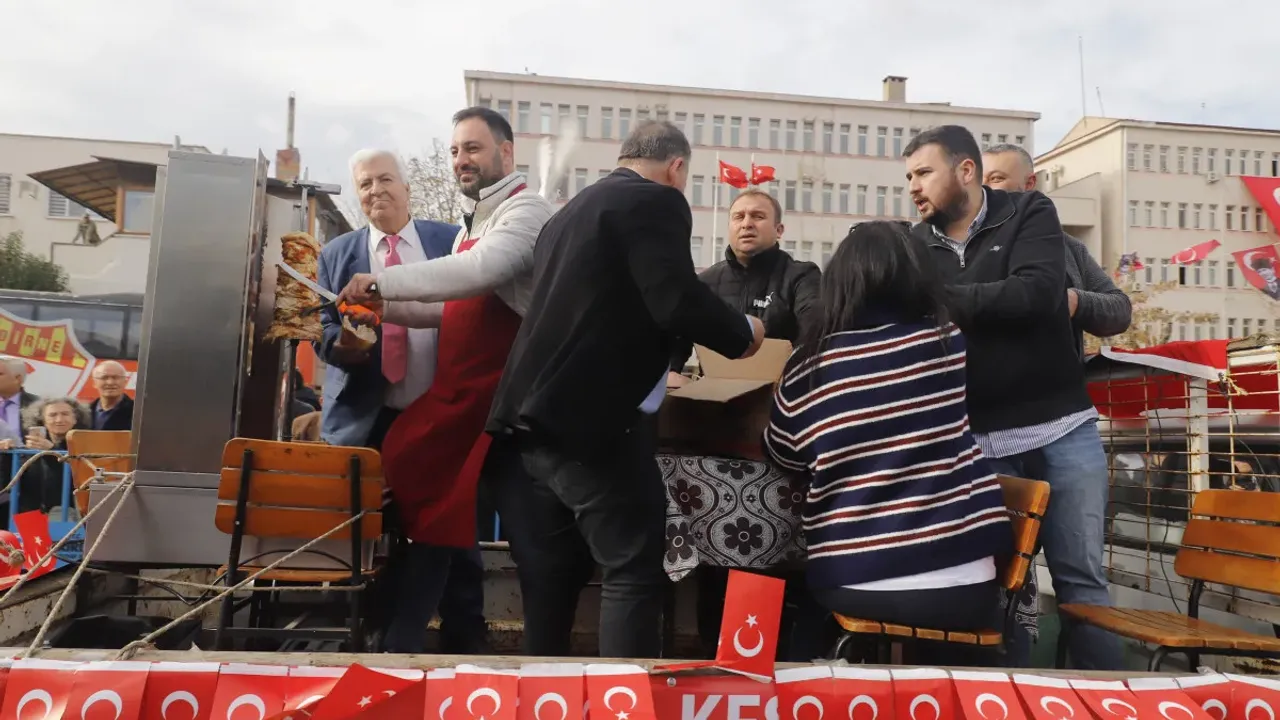 Lokantacı, Kahveci ve Otelciler Odası’nın kamyonetine kurulan ocakta döner kesilerek dağıtıldı.