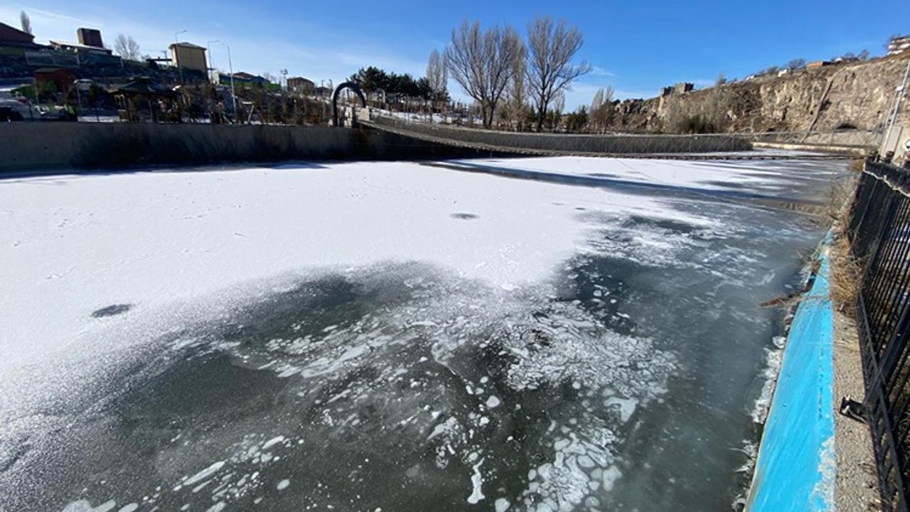 İl merkezindeki Kura Nehri ve Alabalık Deresi'nin yüzeyi buzla kaplandı.