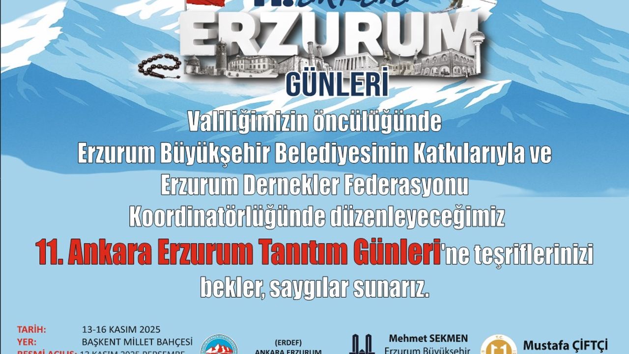 Erzurum Vakfı Başkanı Süreyya Güngör, etkinliğe ilişkin yaptığı açıklamada, “Birlik beraberliğimizin nişanesi olacak 11. Ankara Erzurum Tanıtım Günlerine tüm dostlar davetlidir” ifadelerini kullandı.