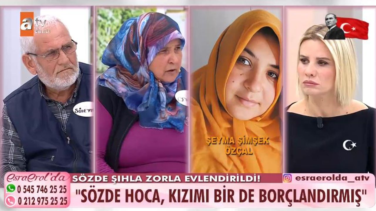 Cennet Hanım ve Süleyman Bey, Antalya Serik’ten 29 yaşındaki kızları Şeyma Şimşek Özçal’ın bulunması için programa katılıyor. Şeyma, 5 Kasım’dan bu yana kayıp. Kendisi, şeyh olarak tanınan Hüseyin Özçal ve tarikat üyesi kişilerle birlikte bulunuyor. Daha önce müftülükte çalışan Şeyma, Hüseyin Özçal ile tanıştıktan sonra davranışlarında değişiklikler göstermeye başlıyor. Bir süre sonra, Hüseyin Özçal ile kaçarak ailesiyle iletişimini kesiyor. Babaannesinin ölümünden sonra kısa süreliğine yeniden ortaya çıkan Şeyma, tekrar ortadan kayboluyor. Uzun bir süre sonra ailesini arayarak “Beni kurtarın, bana yardım edin” diyor. Ailesi tarafından aylarca aranan Şeyma Şimşek Özçal, sonunda Esra Erol’un programına katılarak yardım talebinde bulunuyor. Yapılan araştırmalar, 2020 yılında ortadan kaybolan Şeyma’nın Hüseyin Özçal ile evlendiğini ve onun müritleri ile birlikte yaşadığını ortaya koyuyor.