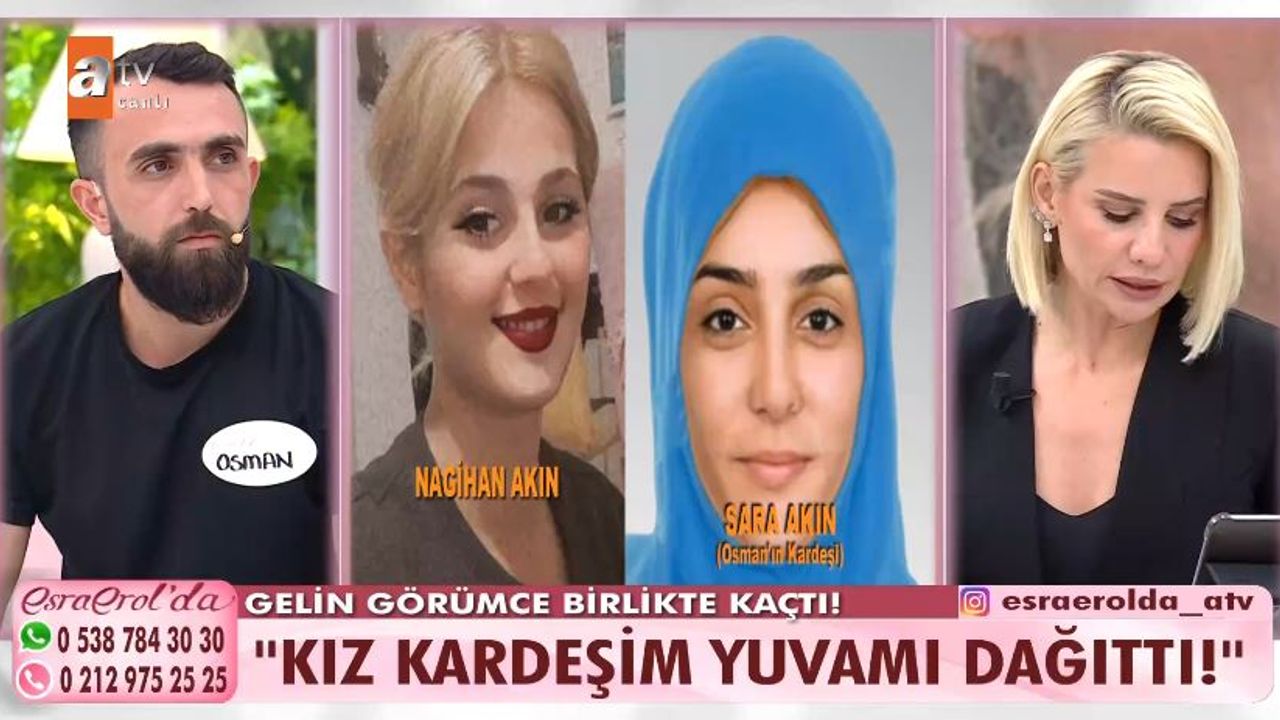 Osman Akın, hem eşini hem de kız kardeşini aramak için Esra Erol’un programına katıldı. Kız kardeşi Sara Akın’ın eşinden boşandıktan sonra evlerine yerleşmesinin, kendi evliliklerini olumsuz etkilediğini belirten Osman Akın, Sara Akın’ın eşi Nagihan Akın’ın aklına girdiğini iddia etti. Osman Akın, 13 Kasım tarihinde kız kardeşi Sara Akın’ın, eski eşinden olan çocuklarını görmek için Nagihan Akın ile birlikte evden ayrıldığını ve dört çocukla beraber ortadan kaybolduklarını söyledi. Eşinin iddialarının ardından canlı yayına bağlanan Nagihan Akın, “Bizim kimseyle bir ilgimiz yok, biz gelin görümce kaçtık. Kocamın yüzünü görmek istemiyorum.” dedi. Osman Akın ise eşinin, Resul isimli bir erkekle WhatsApp durumunda samimi fotoğraflar paylaştığını; kendi çocukları ve başka erkeklerle otelde kaldığını, hatta çocukların bazı olaylara şahit olduklarını ve bunu telefonla arayarak kendisine anlattıklarını ileri sürdü. Harun ismi sorulduğunda önce “Harun isminde birini tanımıyorum.” diyen Nagihan Akın’ın, çocuklarını Harun isimli bir kişiye bıraktığı ve bu kişinin de çocukları babalarına teslim ettiği öğrenildi. Eşinin kendisine şiddet uyguladığını iddia eden Nagihan Akın, eşinden boşanmak istediğini; ahlaksızlık yapmadığını, yalnızca eşinden kaçmaya çalıştığını ifade etti. Osman Akın’ın çocukların beslenme ihtiyaçlarını bile karşılamadığını, kendisinin sağdan soldan borç alarak çocuklara bakmaya çalıştığını söyleyen Nagihan Akın, eşinin yüzünü görmek istemediğini yineledi. Nagihan Akın’ın iddialarını reddeden Osman Akın ise çocukları annelerine vermeyeceğini ve bir daha yüzlerini göstermeyeceğini söyledi. Bunun üzerine sinirlenen Nagihan Akın, “Çocukları alsan sanki bakabilecek misin? Bugüne kadar neyle ilgilendin? Karınlarını bile ben doyurdum.” ifadelerini kullandı.