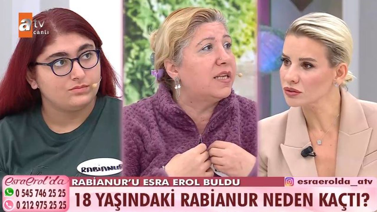 Duygu Kaya, 18 yaşındaki kızı Rabia Karabulut’un bulunması için Ankara’dan gelerek Esra Erol’un programına katıldı. Annesi, kızının 3 ay önce kaybolduğunu belirterek Esra Erol ve ekibinden yardım istemişti. Programa katılan Rabia Karabulut, canlı yayında annesiyle buluşturuldu. Rabia, kendisini ifade ederken “Kimsenin beni bulmasını istemedim, çok dolmuştum, yaşadıklarım çok ağır geldi” dedi. Çocuk Esirgeme Kurumunda büyüdüğünü belirten Rabia, yurtta kaldığı süre boyunca akran zorbalığına maruz kaldığını ve birçok zorluk yaşadığını söyledi. Maddi yetersizlik nedeniyle annesinin yanına alınamadığını ve çaresiz kaldığı için yurtta kaldığını ifade etti. Duygu Kaya ise kızını yurda kendi bırakmadığını, bunu anneannesinin yaptığını, sonrasında maddi durumu el vermediği için yanına alamadığını belirtti. Kaya, “Rabianur iyileştiğinde beni alabilirdin” ifadelerini duydu. Canlı yayına bağlanan başka bir seyirci, 17 yaşındaki kızının Rabianur yüzünden evden kaçtığını, bir ay Rabianur’un yanında kaldığını ve bu süreden sonra kızından haber alamadığını anlattı. Rabia ise anneye yanıt vererek, “Kızın bir ay benim yanımda kaldı, beraber vakit geçirdik. Ancak en sonunda kızını annesinin yanına gönderdim, bir süredir haber alamadım” dedi. Anne Duygu Kaya’nın Rabia’ya “Sen hem yurttan kaçıyorsun hem de milletin kızlarının mı aklına giriyorsun” çıkışına Rabia, “Sen 11 yıl gelip bana annelik yapmadın, 4 ay ortadan kayboldum o zaman sorun olmadı mı? Sen bir işe girip gelip beni yurttan almadın, ne biçim annesin?” sözleriyle karşılık verdi.