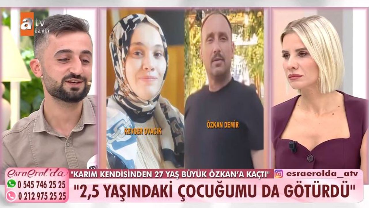 Mustafa Ovacık, annesi Ayten Ovacık ile birlikte kayıp olan eşi Kevser Ovacık’ı bulmak için Esra Erol’un programına katıldı. Eşinin, 2,5 yaşındaki çocuklarını da alarak kendisinden 27 yaş büyük Özkan Demir ile kaçtığını düşünen Mustafa Ovacık, eşi ve çocuğunun bulunmasını istiyor. Eşinin kendisine haber vermeden boşanma davası açtığını öğrenen Mustafa Ovacık, aynı gün Kevser Ovacık’ın evi terk ettiğini ve başka bir erkekle kaçtığını iddia etti. Eşinin annesini arayan Ovacık, başlangıçta Kevser’in ailesinin de durumdan haberdar olmadığını öğrendi. Ancak daha sonra Kevser Ovacık’ın annesinin evine gittiğini, ailesinin ise bunu gizlediğini öne sürdü. Eşinin kendisine uzaklaştırma kararı aldırdığını ve iletişim kurmaktan kaçındığını belirten Mustafa Ovacık, 2,5 yaşındaki çocuğunun güvenliği konusunda da endişeli olduğunu dile getirdi. Kevser Ovacık ile ilişkisi olduğu iddia edilen Özkan Demir, canlı yayına bağlanarak kendisiyle bir dönem telefonda flört ettiklerini ve birkaç kez görüştüklerini ancak şu anda aralarında bir ilişki olmadığını söyledi. Mustafa Ovacık’ın iddialarını reddeden Demir, Kevser Ovacık’ın kendisine eşi tarafından fiziksel ve psikolojik şiddet gördüğünü, maddi ve manevi baskıya maruz kaldığını anlattığını ifade etti. Evli bir kadınla kısa süreli bir ilişkisi olduğunu kabul eden Demir, şu anda Kevser Ovacık ile hiçbir bağlantısının bulunmadığını vurguladı. Kısa bir süre sonra canlı yayına bağlanan Kevser Ovacık, sağlık durumunun iyi olduğunu ve ne Özkan Demir’le ne de eşiyle şu anda bir ilişkisi olmadığını söyledi. Eşinin kendisine şiddet uyguladığını, ailesinin baskısı altında yaşadığını belirterek eşiyle görüşmek istemediğini ifade etti. Mustafa Ovacık ise “Sen ne yaparsan yap, benim 2,5 yaşındaki kızımı hakkında adli kontrol kararı bulunan, kendinden 27 yaş büyük bir adamla bir araya getiremezsin” dedi. Kevser Ovacık, kayınvalidesinin baskısı altında kaldığını ve evlilik sürecinde sürekli ezildiğini dile getirdi. “Ben 23 yaşında, kendi ayakları üzerinde duran ve çocuğuna bakmaya çalışan bir kadınım” diyen Ovacık, Özkan Demir ile olan ilişkisinin “abi-kardeş ilişkisi” olduğunu, eşinin kendisini aldattığı yönündeki iddialarının ise gerçeği yansıtmadığını söyledi.