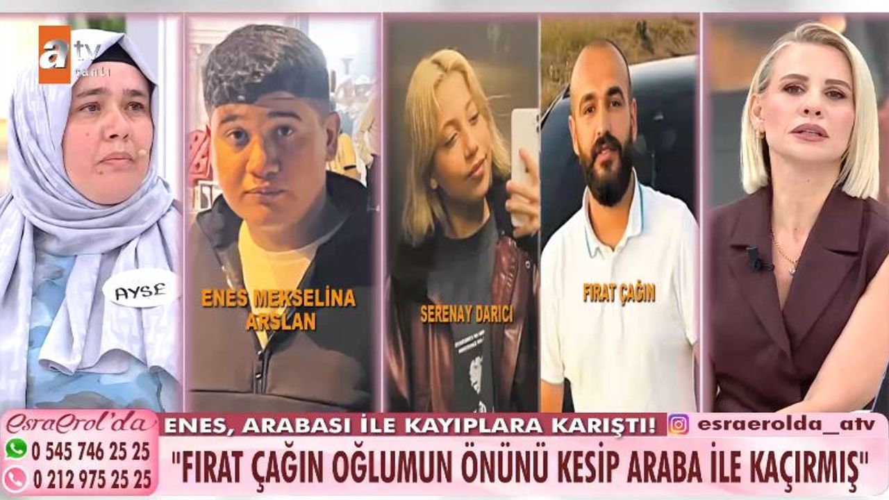 Anne Ayşe Arslan, 18 yaşındaki oğlu Enes Mekselina Arslan’ın kaybolması üzerine Esra Erol’un programına başvurdu. Enes Mekselina Arslan’dan, 7 Kasım tarihinde annesinden arabanın anahtarını aldıktan sonra bir daha haber alınamadı. Enes’in kaybolduğu gün araçta onunla birlikte olduğu bilinen Serenay Darıcı ve Fırat Çağın ile beraber olduğu düşünülüyor.