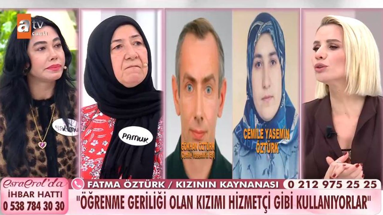 Pamuk Hanım, kızı Cemile Yasemin Öztürk’ün eşinin ailesi tarafından hizmetçi gibi kullanıldığını öne sürerek Esra Erol’dan yardım istedi. Kızının Gökhan Öztürk ile evli olduğunu belirten Pamuk Hanım, Cemile’nin hem kayınvalidesi Fatma Öztürk’ün hem de görümcesinin tüm işlerini yaptığını iddia etti. Kızının akıl sağlığının yerinde olmadığını, çocuk aklına sahip olduğunu söyleyen Pamuk Hanım, Cemile’nin öğrenme geriliği bulunduğunu ve bu nedenle kullanıldığını ileri sürdü. Pamuk Hanım ayrıca damadının “Kızını ben eğittim, her şeyi ona ben öğrettim, istediğim gibi kullanırım” dediğini, kızının kayınvalidesi ve görümcesine hizmet ettirildiğini iddia etti.