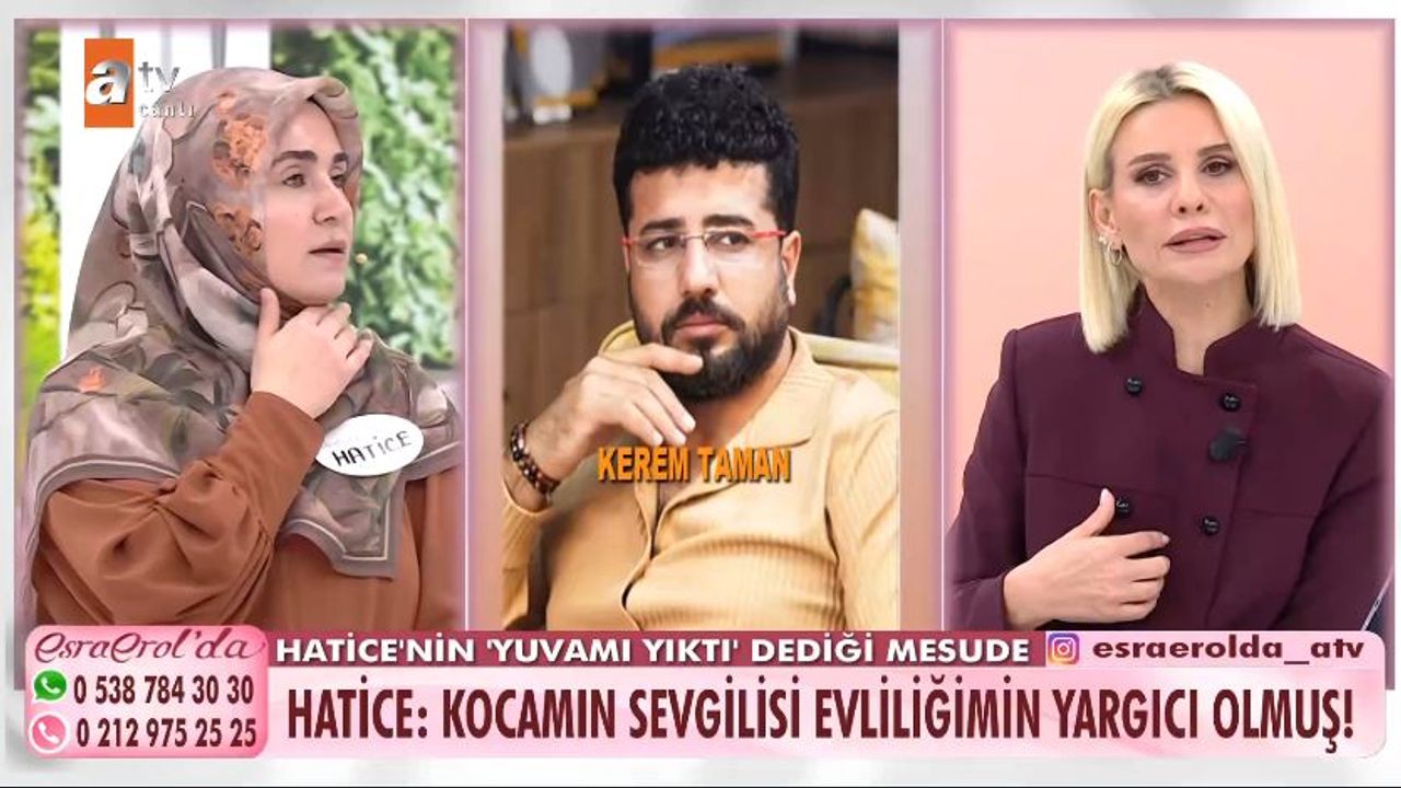 Hatice Taman, eşi Kerem Taman tarafından aldatıldığını öne sürerek Esra Erol’un programına katıldı. İki çocuk annesi ve modelist olan Hatice Taman, eşinin telefonunda 45 yaşındaki Mesude Kuş ile ilişkiye dair romantik mesajlar ve özel görüntüler bulduğunu söyledi. Durumla yüzleşmesinin ardından Kerem Taman’ın delilleri yok etmek amacıyla telefonu kırdığını ve kendisini evden kovduğunu iddia etti.