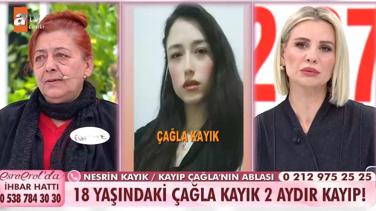 Ünzile Hanım, 18 yaşındaki kızı Çağla Kayık’ın yaklaşık iki aydır kayıp olduğunu belirterek Esra Erol ve ekip arkadaşlarından yardım istedi. Ünzile Hanım’ın anlatımına göre, birkaç ay önce evde yaşanan bir tartışmanın ardından Çağla, polis çağırarak artık annesiyle yaşamak istemediğini söyledi. Bunun üzerine polis eşliğinde devlet korumasına alınan Çağla, daha sonra ortadan kayboldu. O günden bu yana kızını aradığını ifade eden Ünzile Hanım, Çağla’yı çok özlediğini dile getirdi. Çağla’nın evlatlık olduğunu belirten Ünzile Hanım, büyük kızının küçük kardeşini evde istemediğini ve bu nedenle evde sürekli sorun yaşandığını söyledi. Bu süreçte Çağla’nın psikolojisinin bozulduğunu ifade eden anne, kızının önce çocuk esirgeme kurumuna yerleştirildiğini, ardından kaldığı yurttan kaçtığını öne sürdü. İki kızı olduğunu ve bunlardan birinin evlatlık olduğunu belirten Ünzile Hanım, büyük kızının küçük kızını evden kovduğunu, hatta onu öldürmekle tehdit ettiğini iddia etti. Ünzile Hanım, yaşananların Çağla’nın ruh sağlığını ciddi şekilde etkilediğini savundu.
