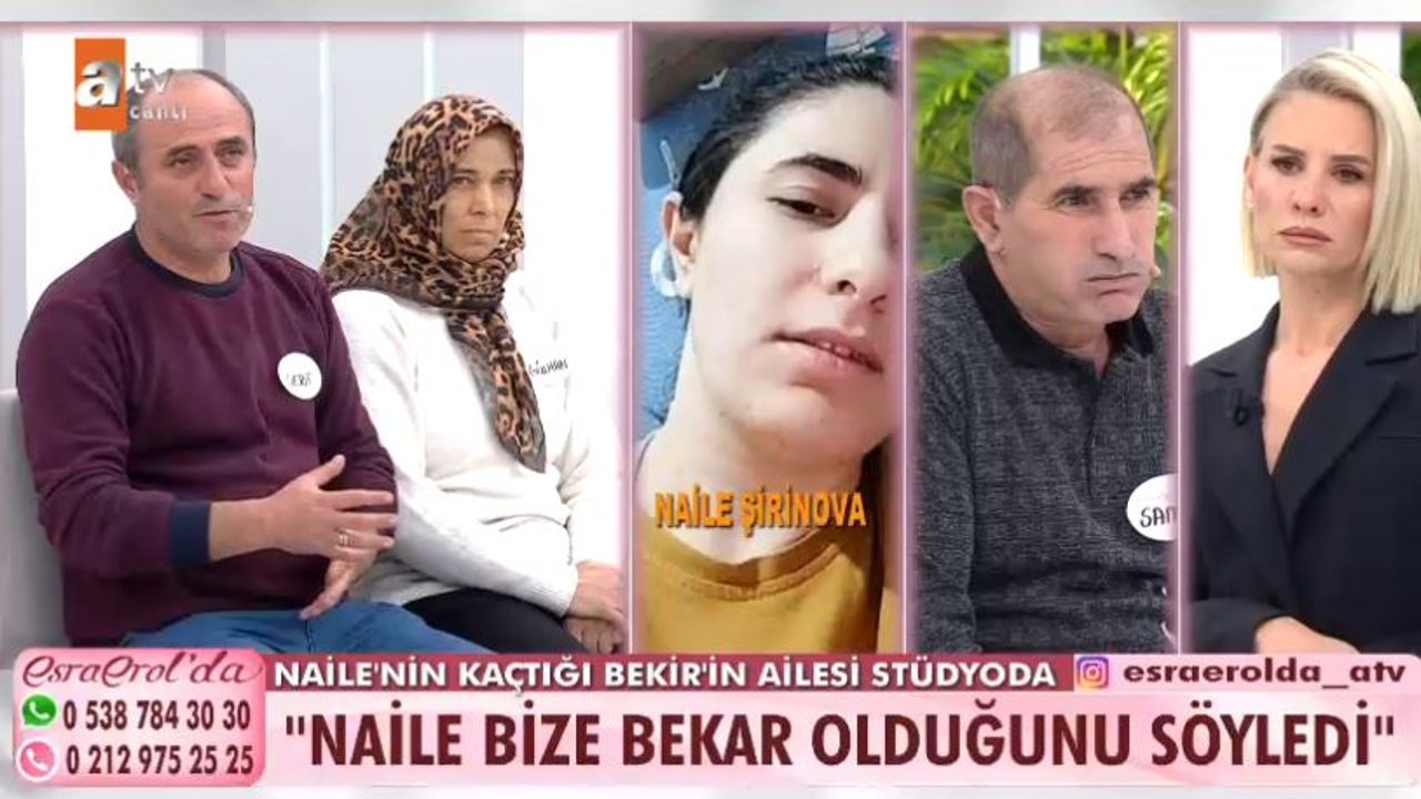 Azerbaycanlı Naile Şirinova, 23 Temmuz’da eşi ve çocuğunu geride bırakarak evden ayrıldı. Durumu öğrenen babası Samet, kızını bulmak için Esra Erol’un programına başvurdu. Canlı yayına bağlanan Şirinova, evden kendi rızasıyla ayrıldığını, çocuğunu terk etmediğini ve herhangi bir sorun olmadığını belirtti. Yanında bulunan Bekir Özdemir ise aralarında gönül ilişkisi olduğunu ve Naile’nin evli ve çocuklu olduğunu sonradan öğrendiğini söyledi. Şirinova, aile üyeleriyle görüşmek istemediğini ve programa katılmayı reddetti. Babası ise velayet konusunda endişelerini dile getirerek, kızının beş aydır Türkiye’de kaçak bulunduğunu iddia edip sınır dışı edilmesini talep etti. Esra Erol’un programına katılan Bekir Özdemir’in anne ve babası, Naile Şirinova’nın kendilerini farklı tanıttığını, evli olduğunu söylemediğini ve çocuğu olduğunu bilmediklerini belirtti. Oğulları ile Naile Hanım arasındaki ilişkiyi onaylamadıklarını ifade ettiler. İsminin Naile olduğunu ise televizyona çıktıktan sonra öğrendiklerini ve evli bir kadını kesinlikle istemediklerini söylediler.
