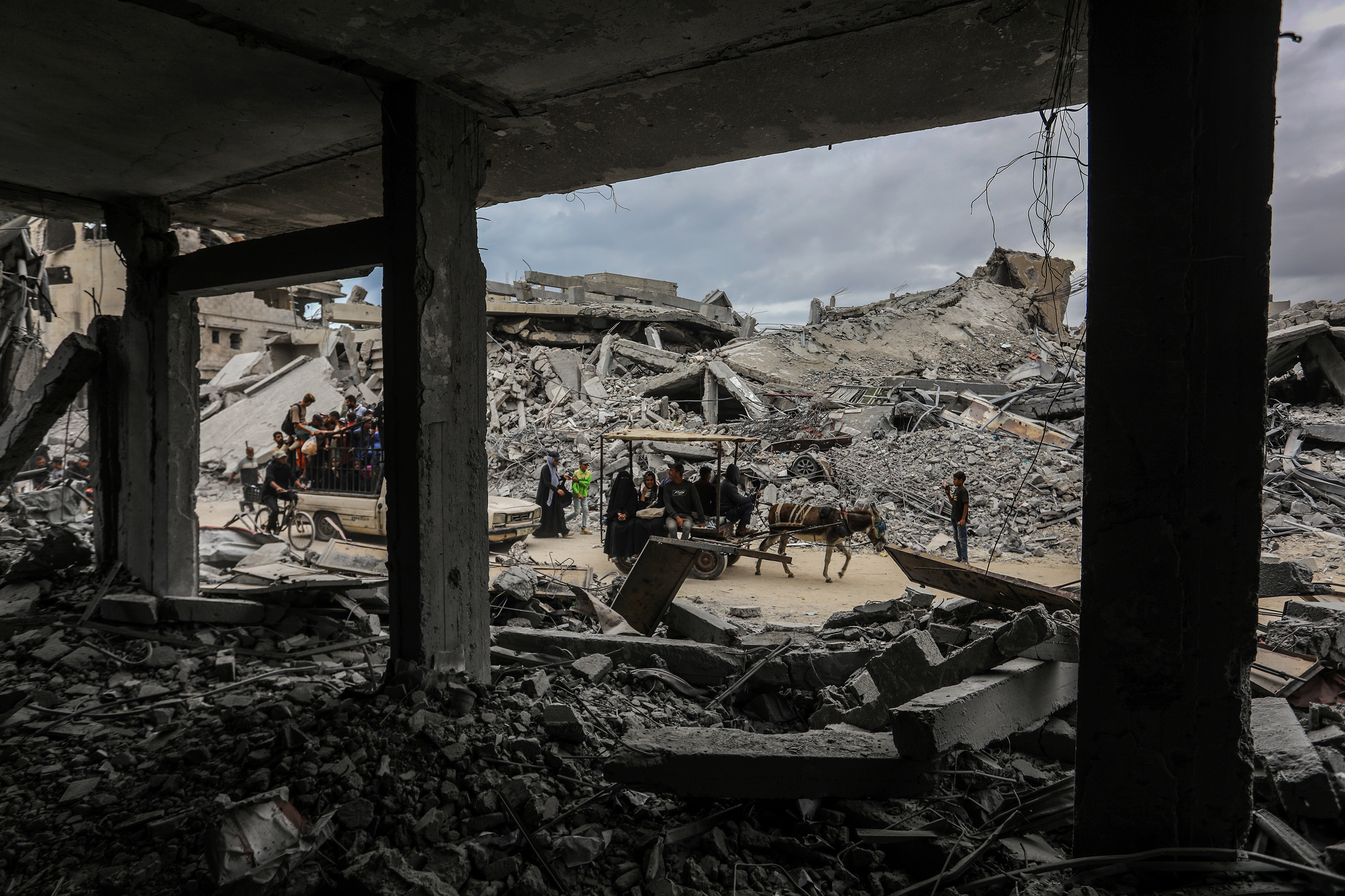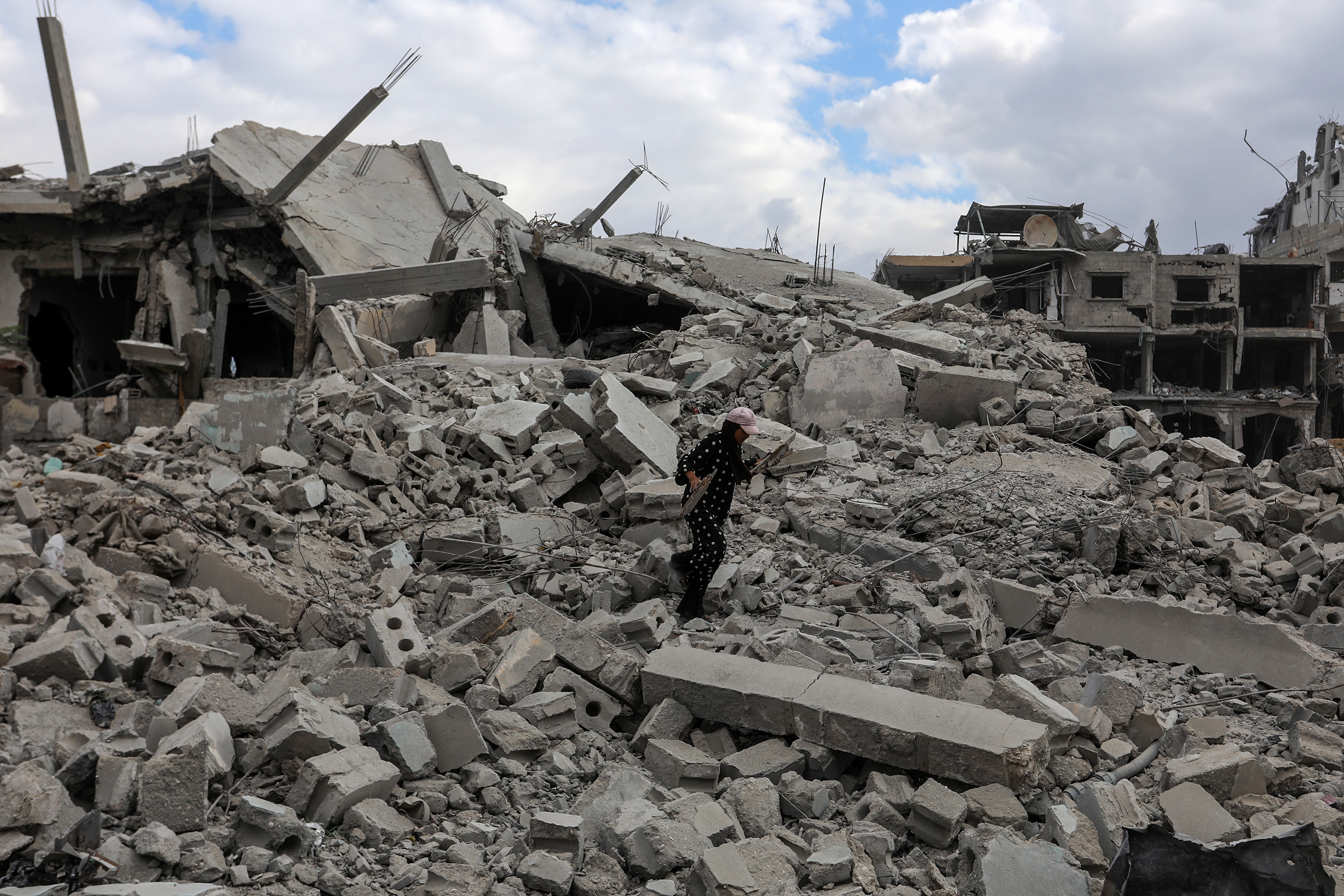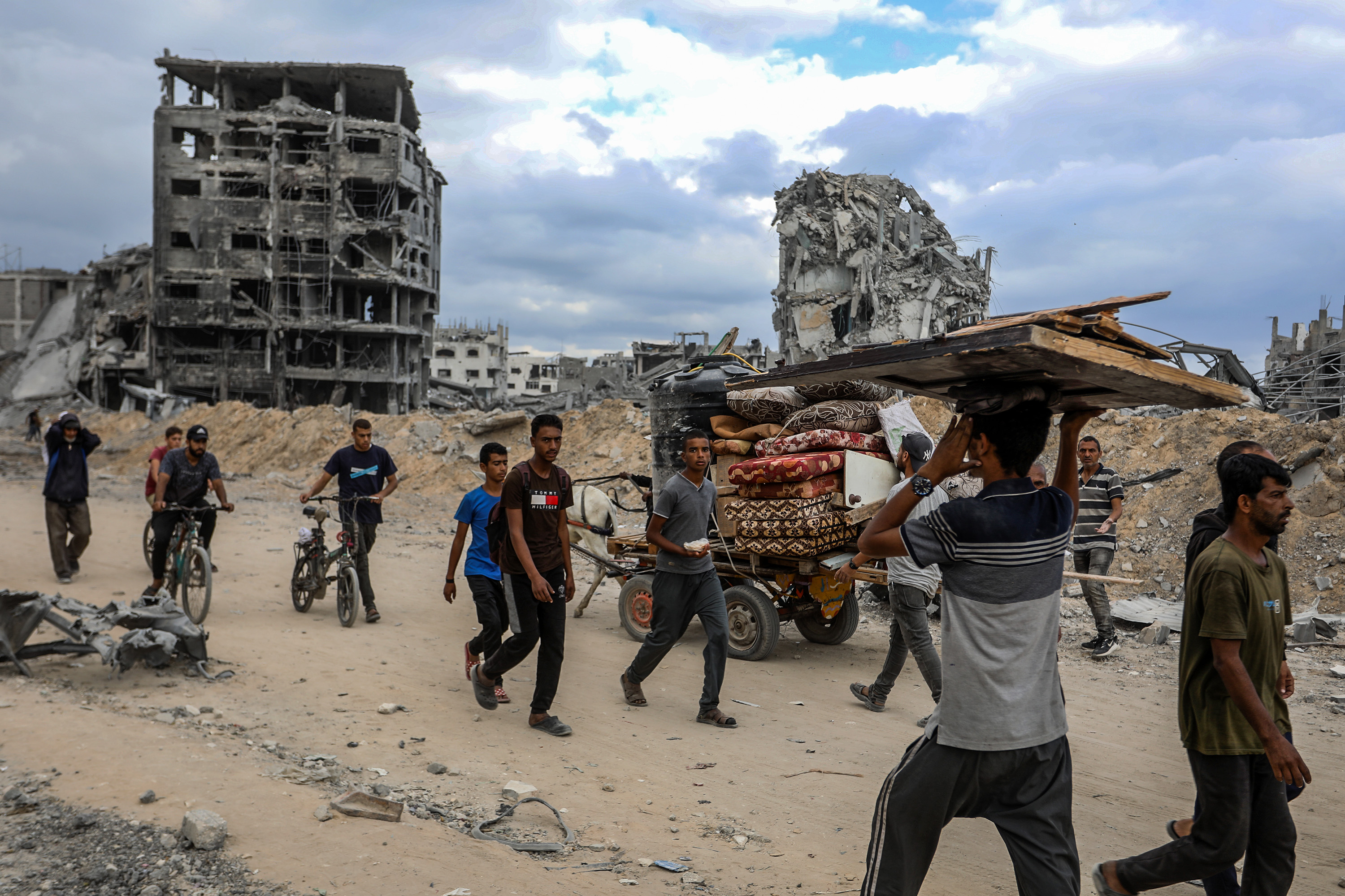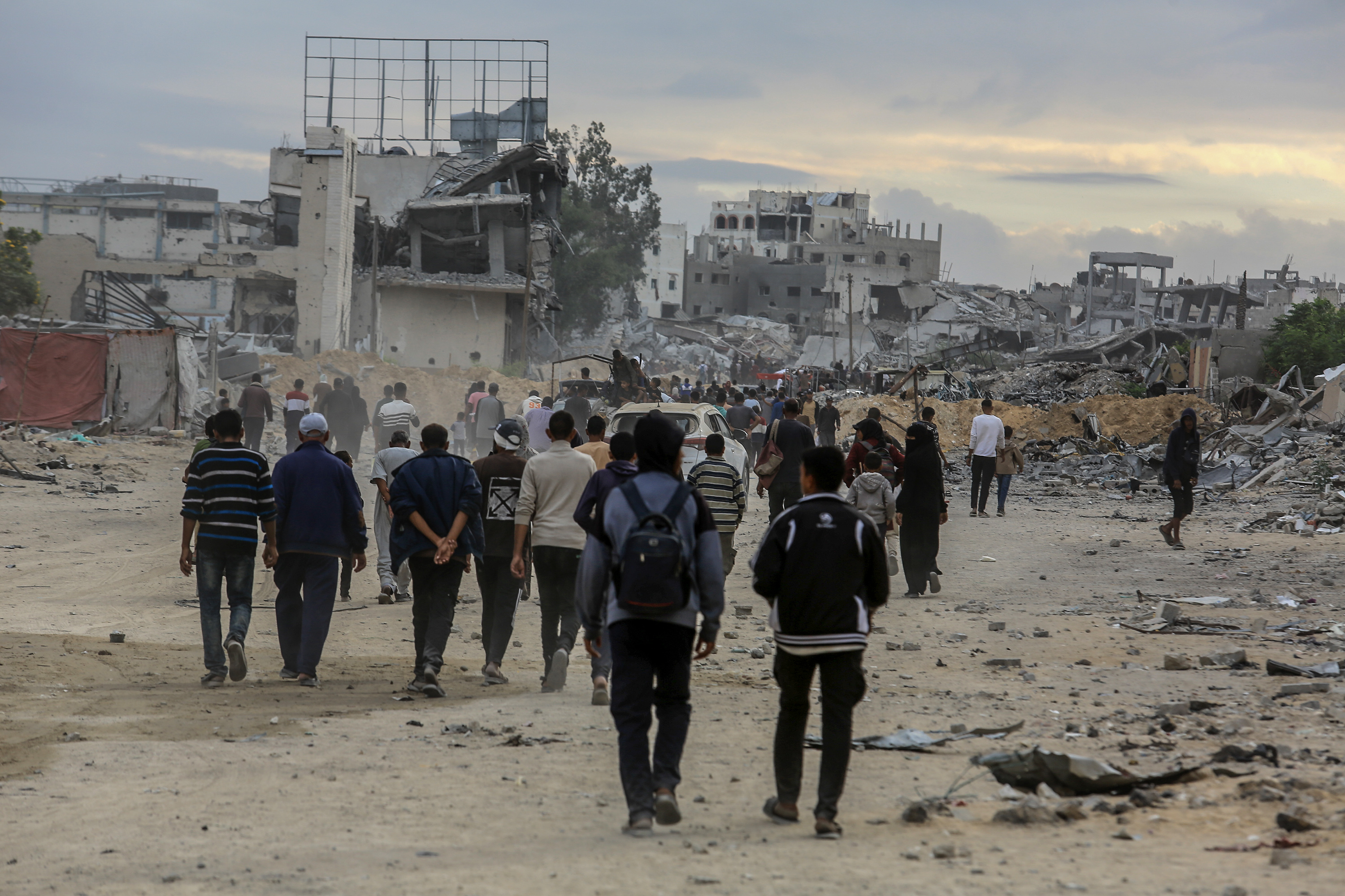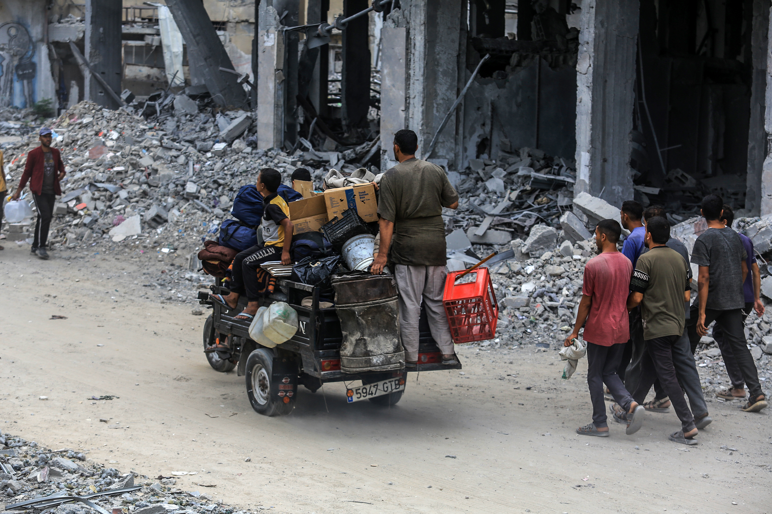 Gazze Şeridi’nin güneyindeki Han Yunus’un doğusunda, İsrail ordusunun çekilmesinin ardından evlerine dönen yerinden edilmiş Filistinliler büyük bir yıkım manzarasıyla karşılaştı.