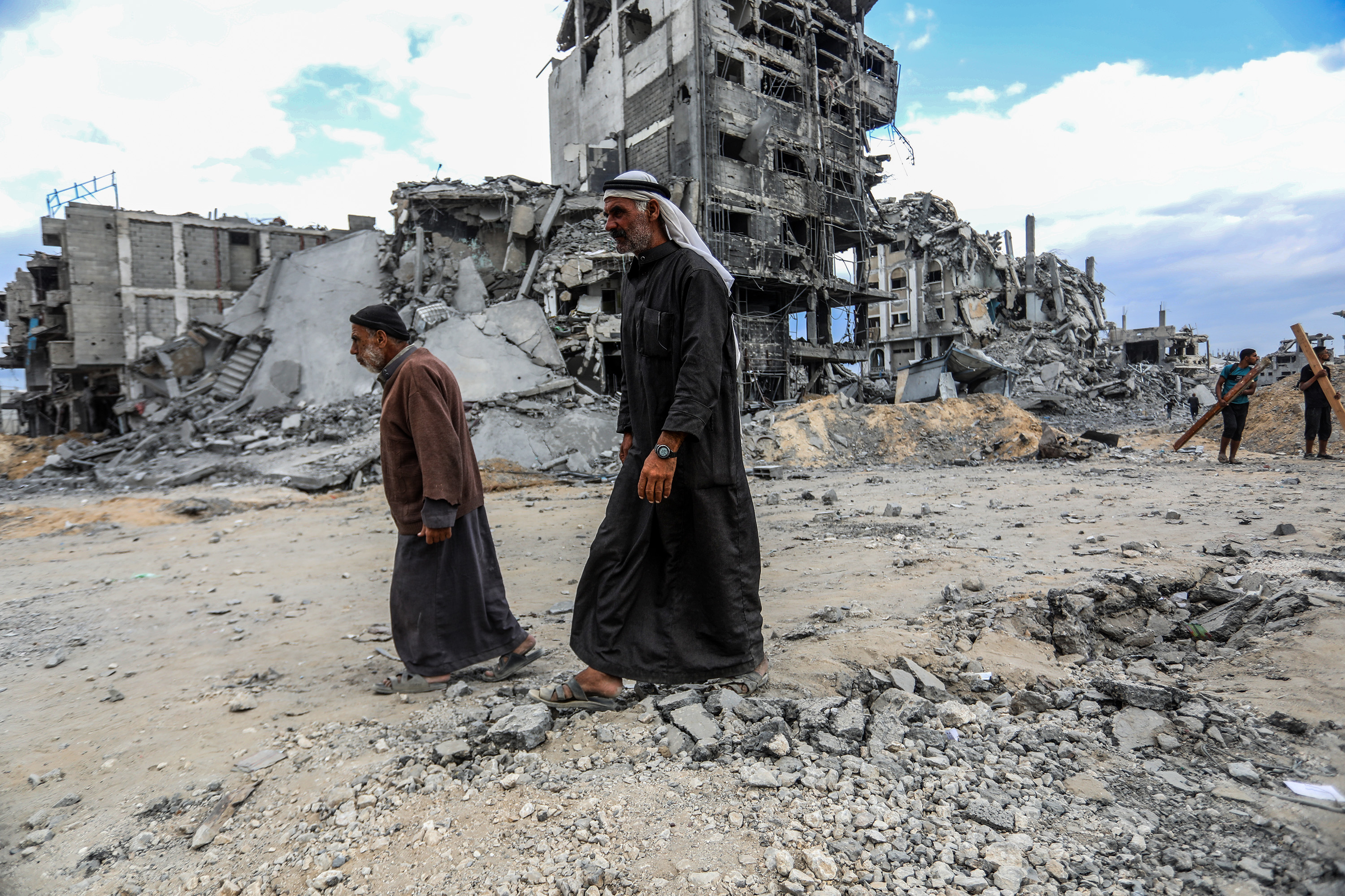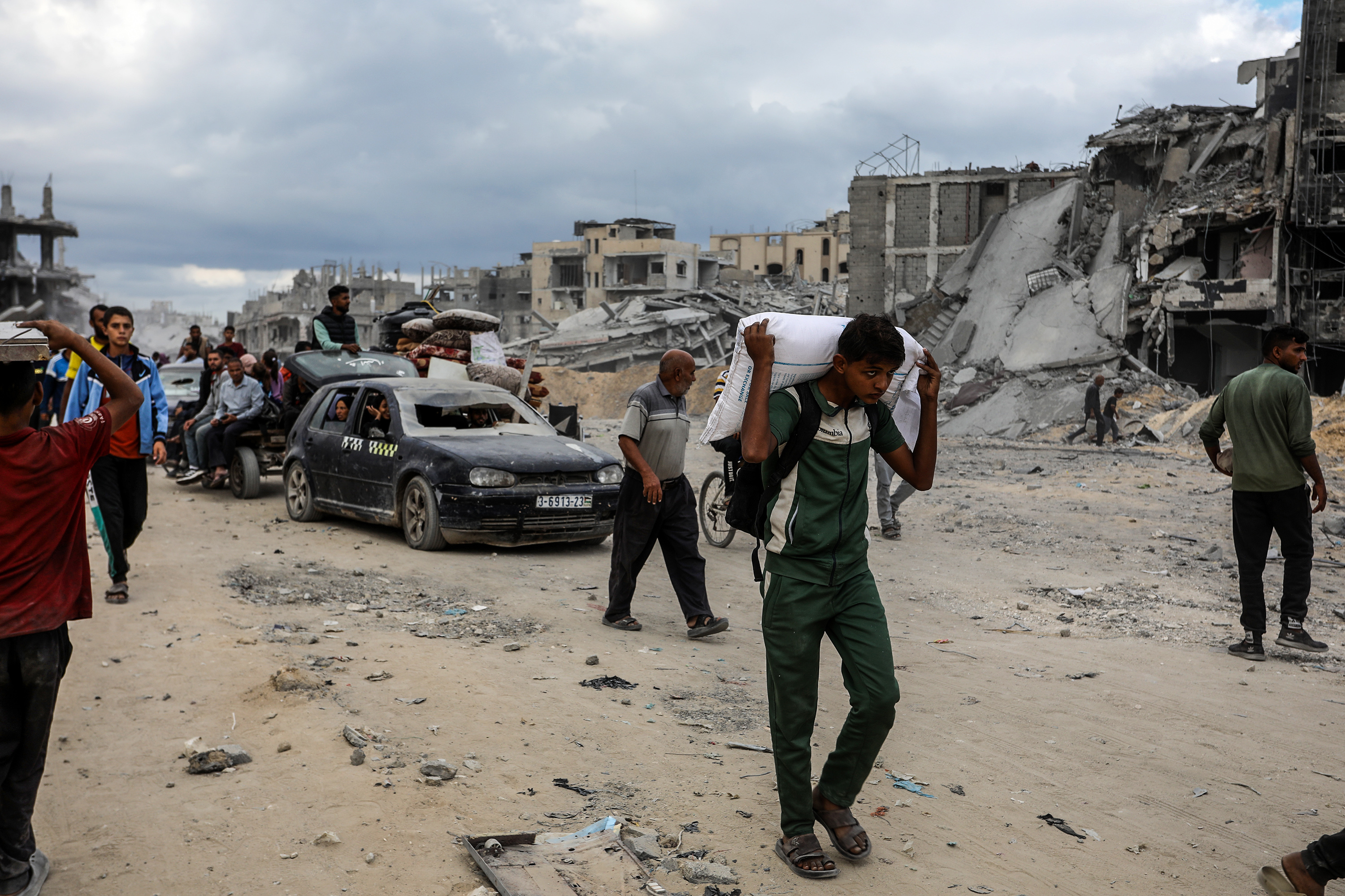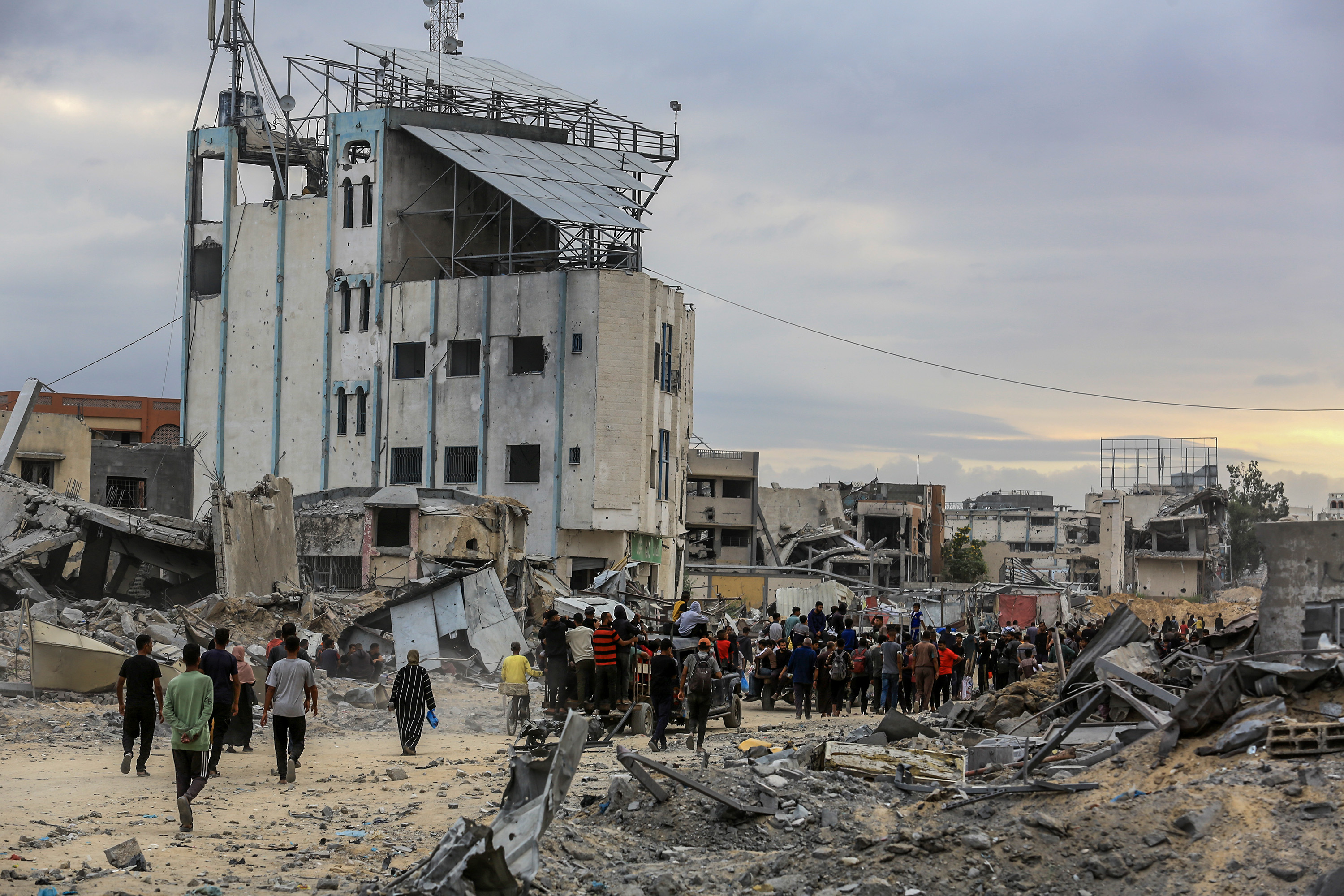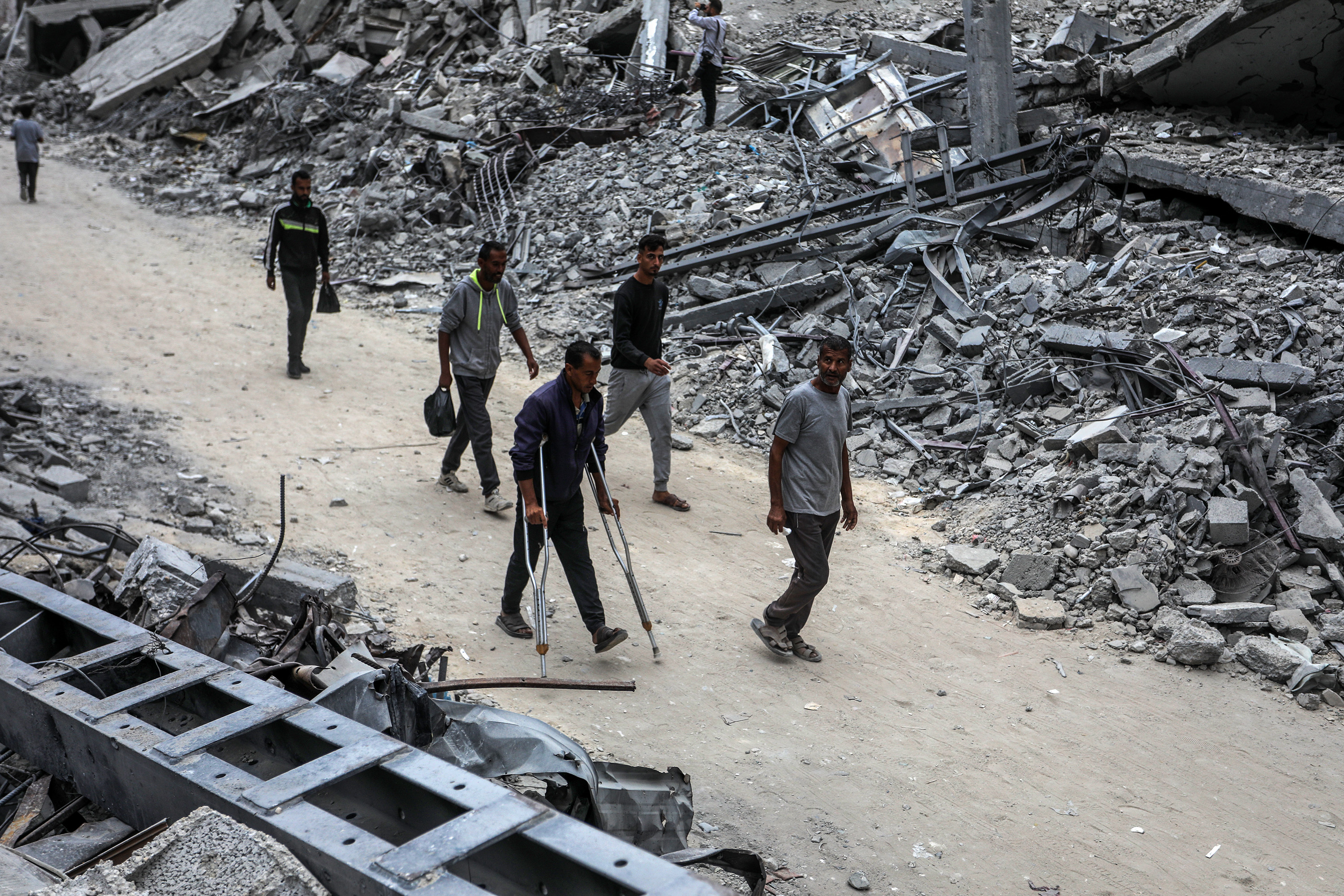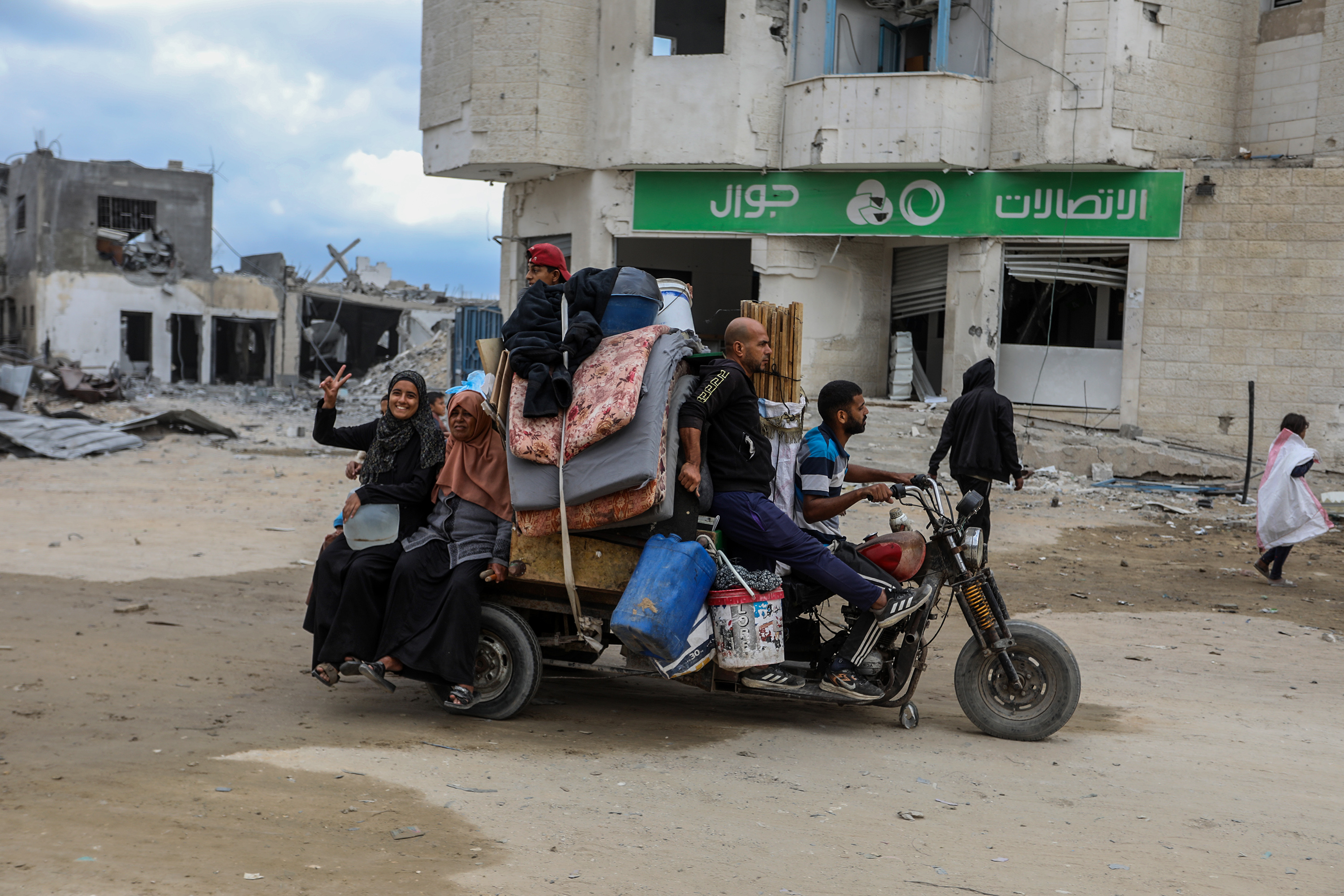 Gazze Şeridi’nin güneyindeki Han Yunus’un doğusunda, İsrail ordusunun çekilmesinin ardından evlerine dönen yerinden edilmiş Filistinliler büyük bir yıkım manzarasıyla karşılaştı.