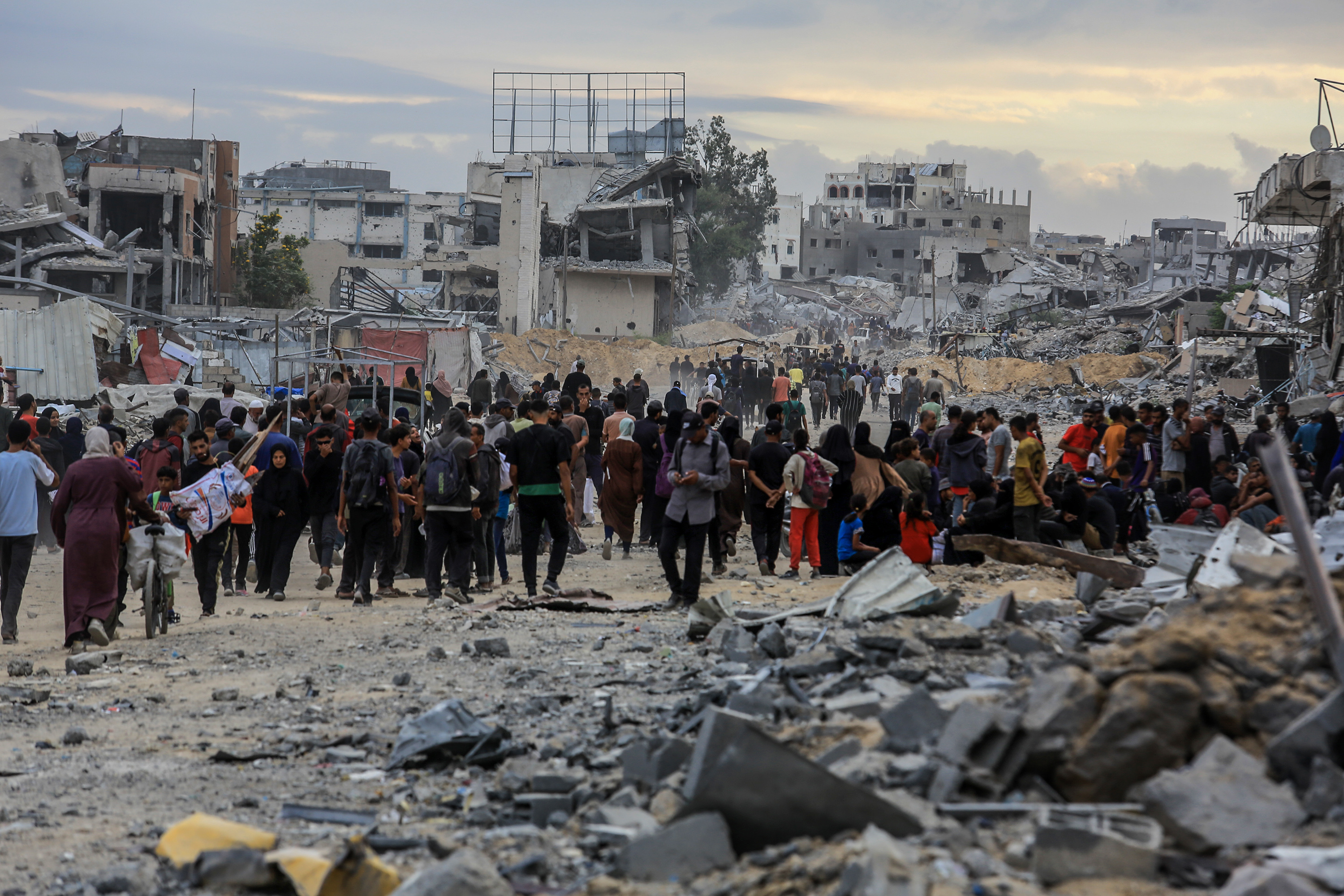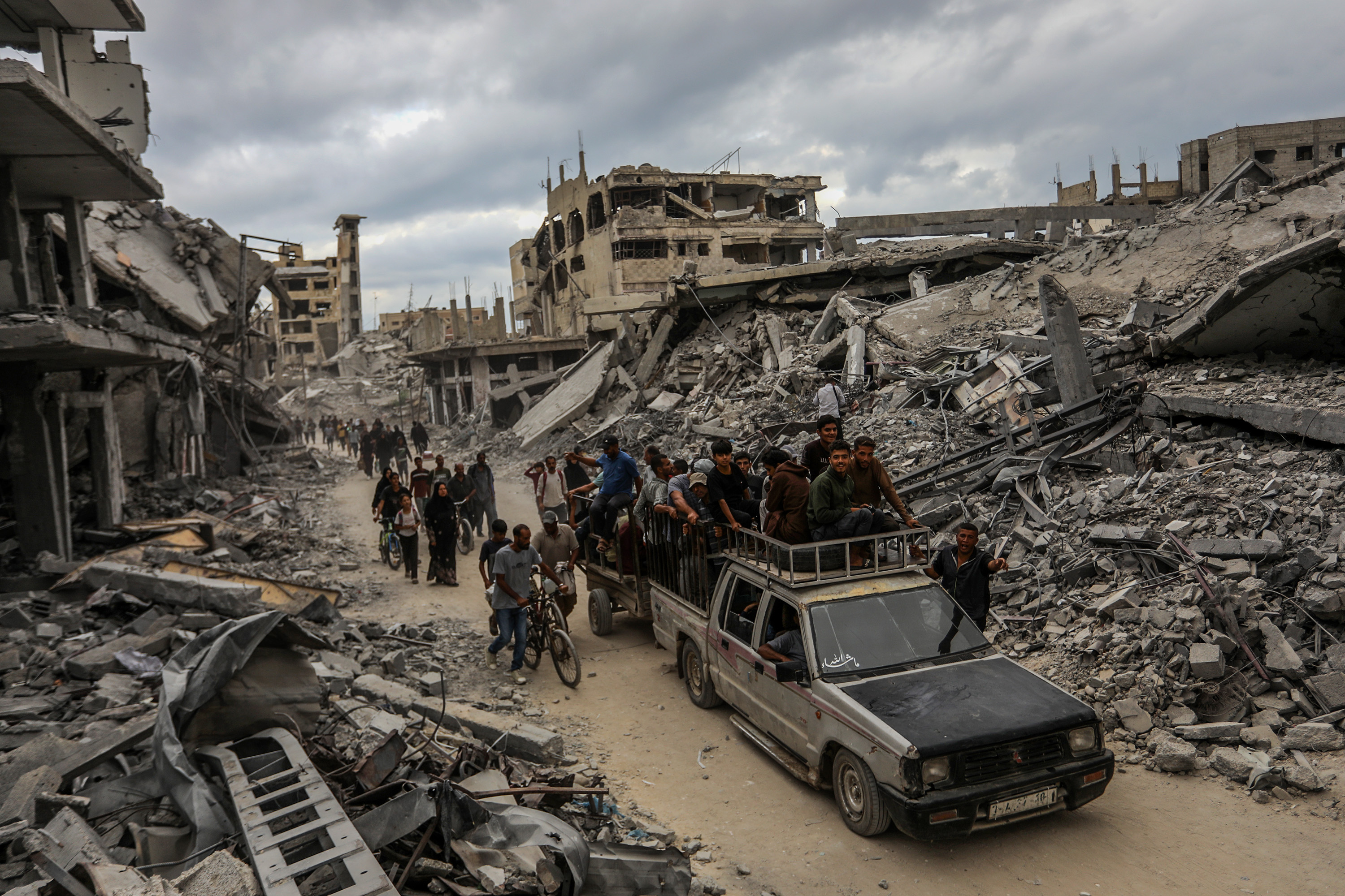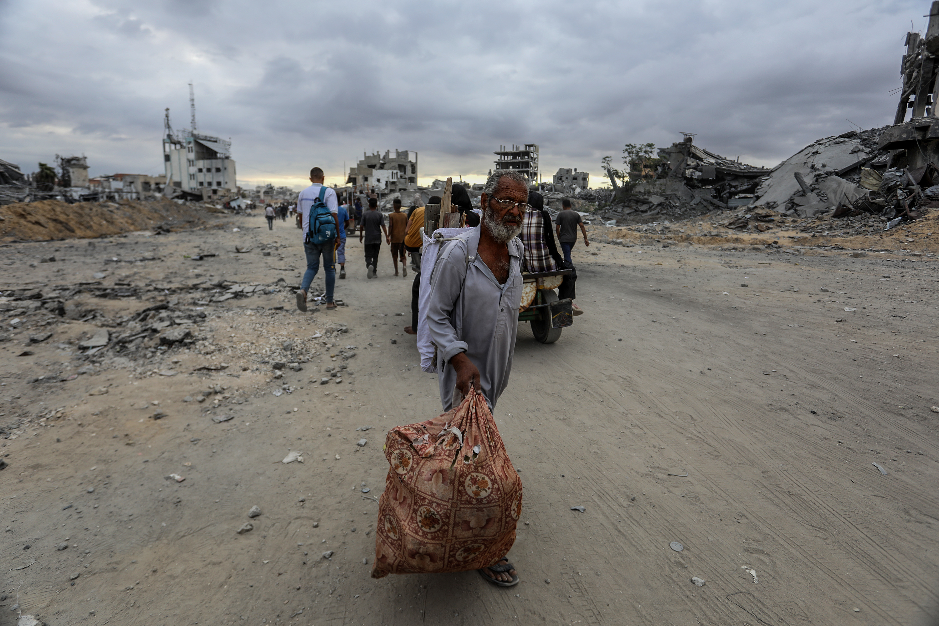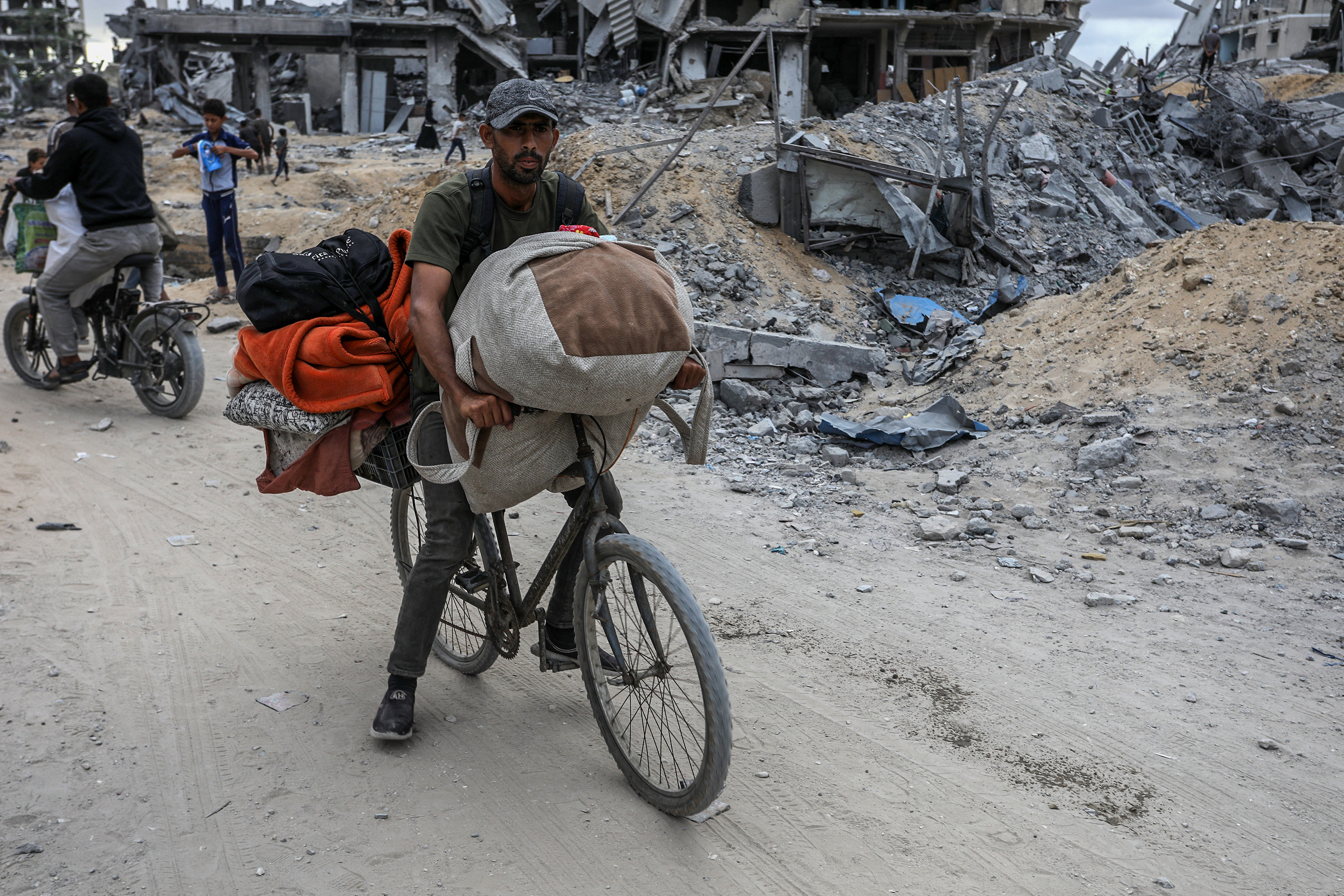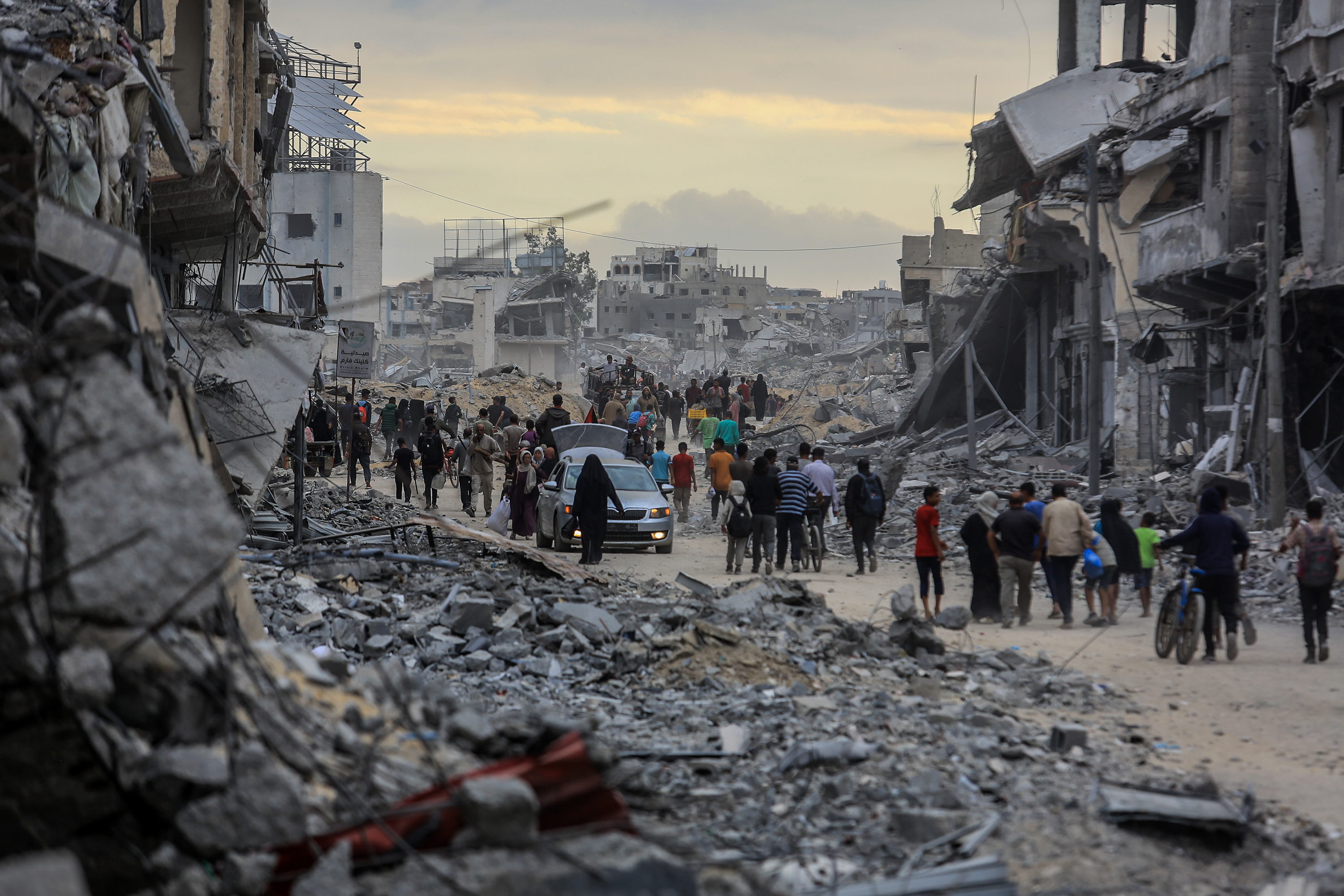 Gazze Şeridi’nin güneyindeki Han Yunus’un doğusunda, İsrail ordusunun çekilmesinin ardından evlerine dönen yerinden edilmiş Filistinliler büyük bir yıkım manzarasıyla karşılaştı.