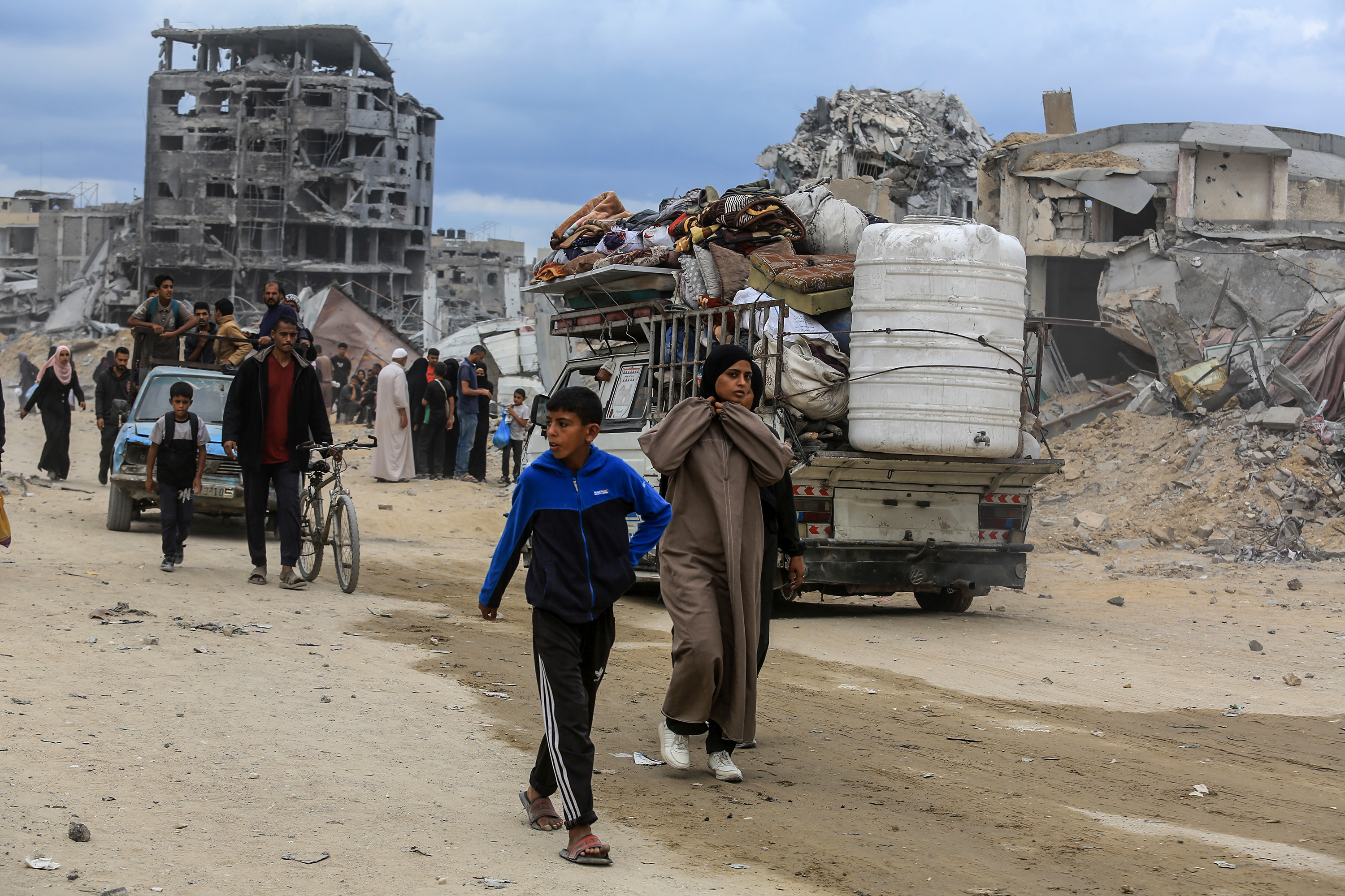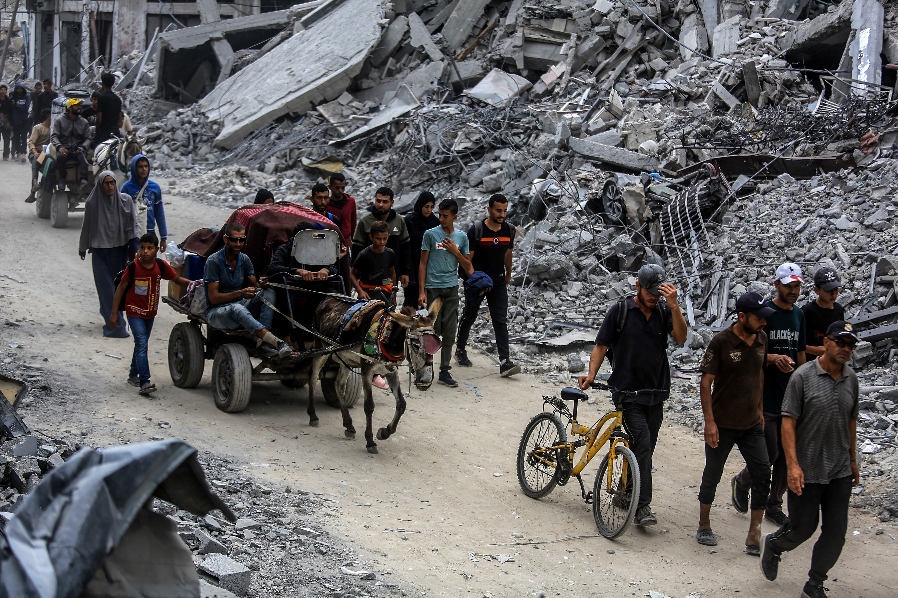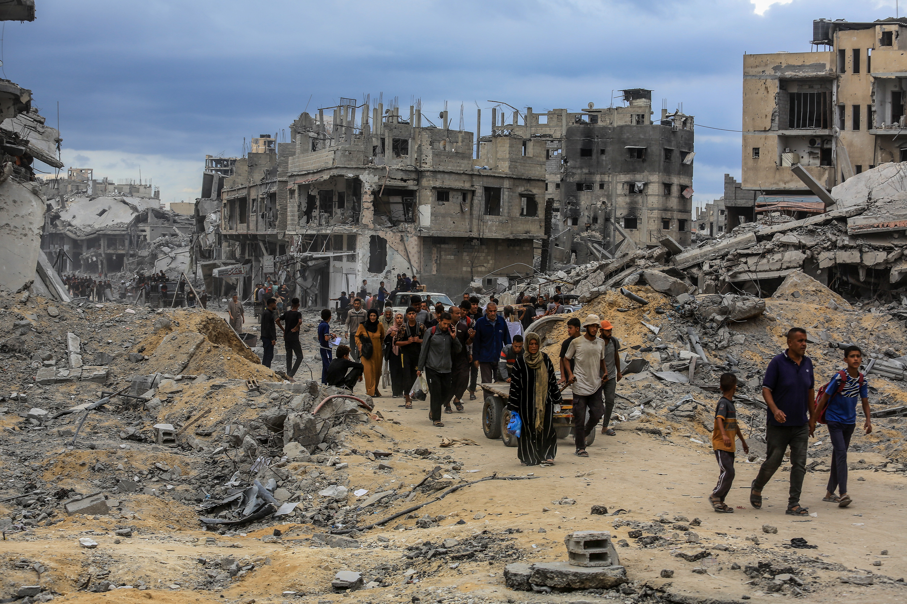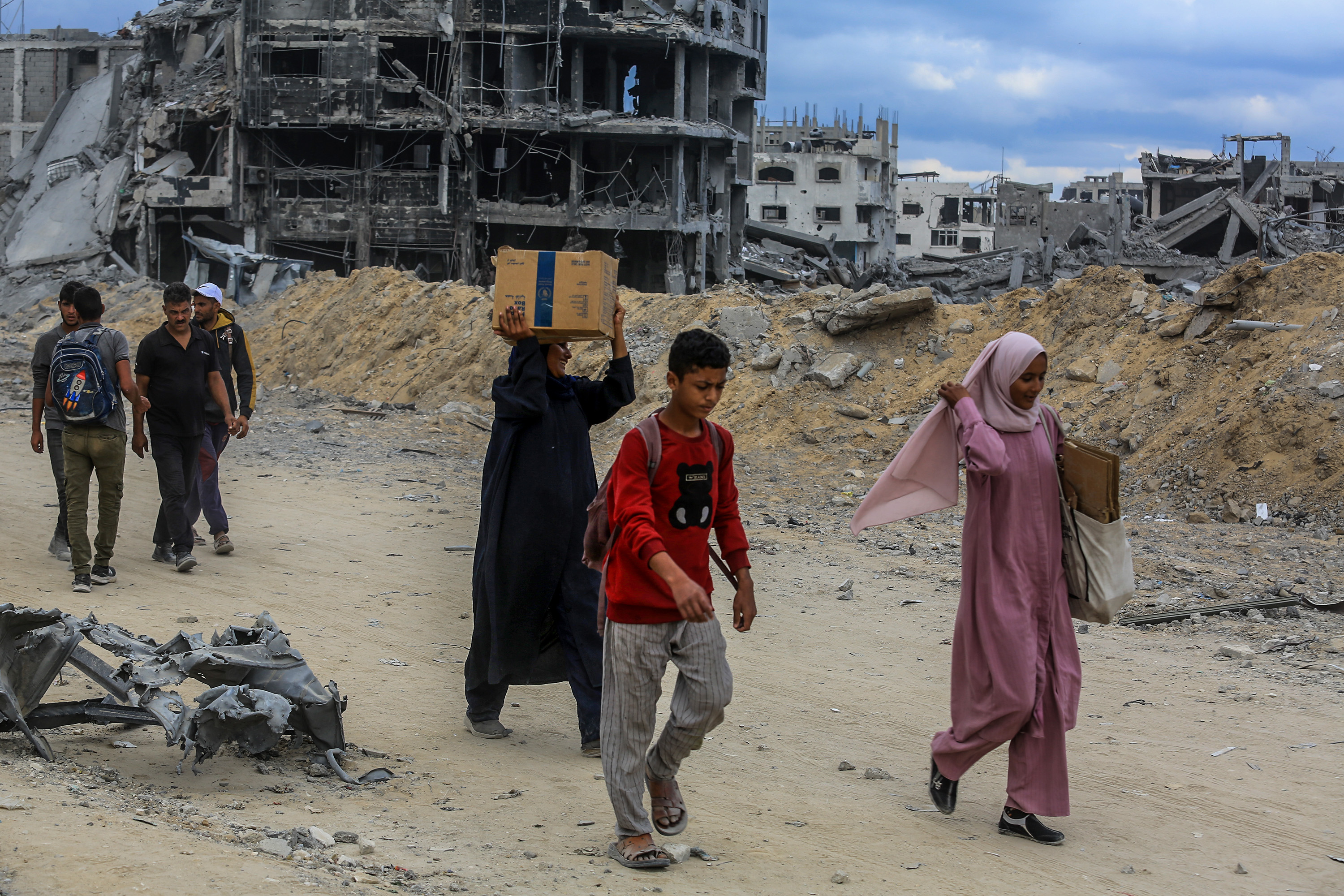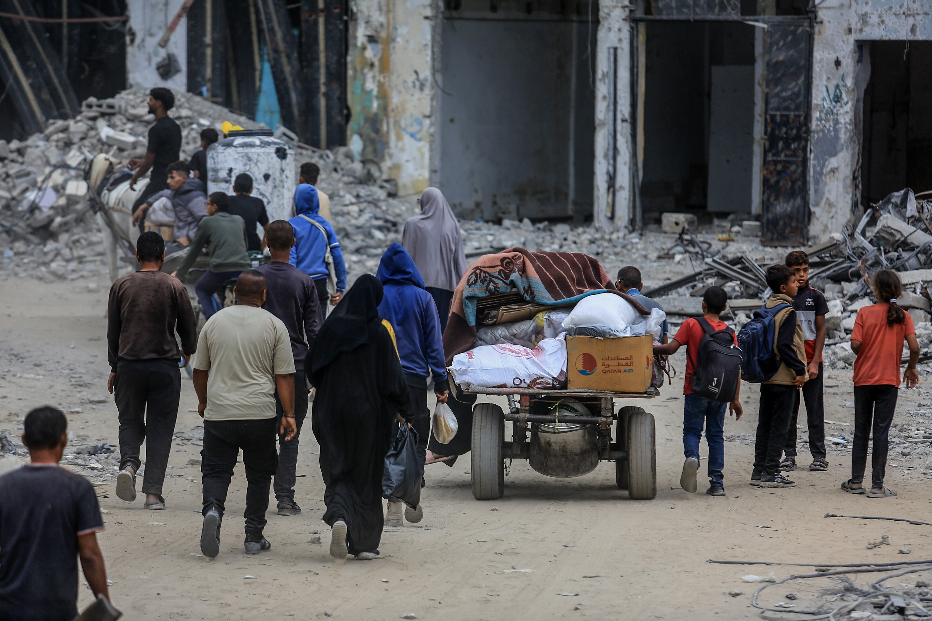 Gazze Şeridi’nin güneyindeki Han Yunus’un doğusunda, İsrail ordusunun çekilmesinin ardından evlerine dönen yerinden edilmiş Filistinliler büyük bir yıkım manzarasıyla karşılaştı.