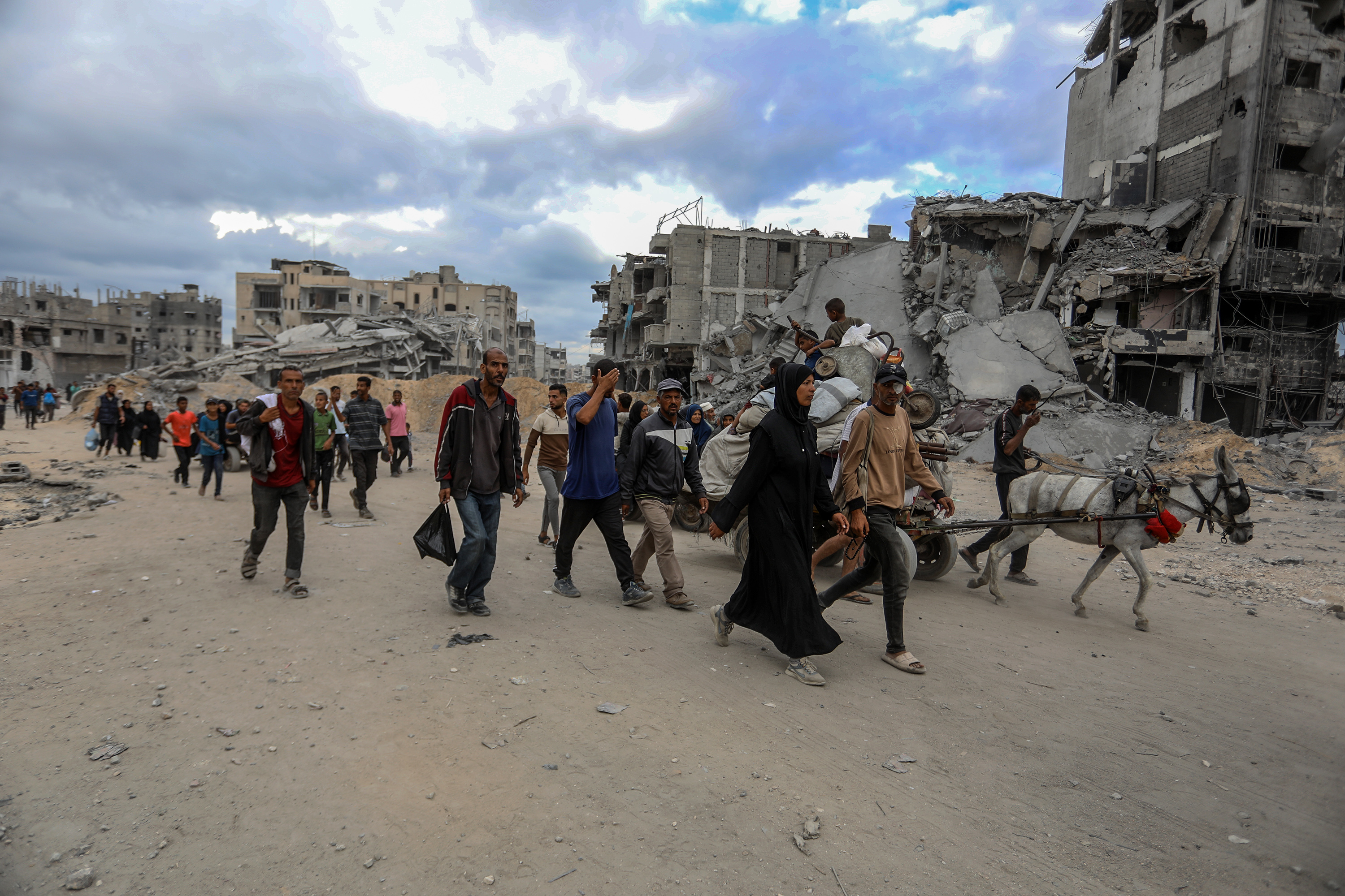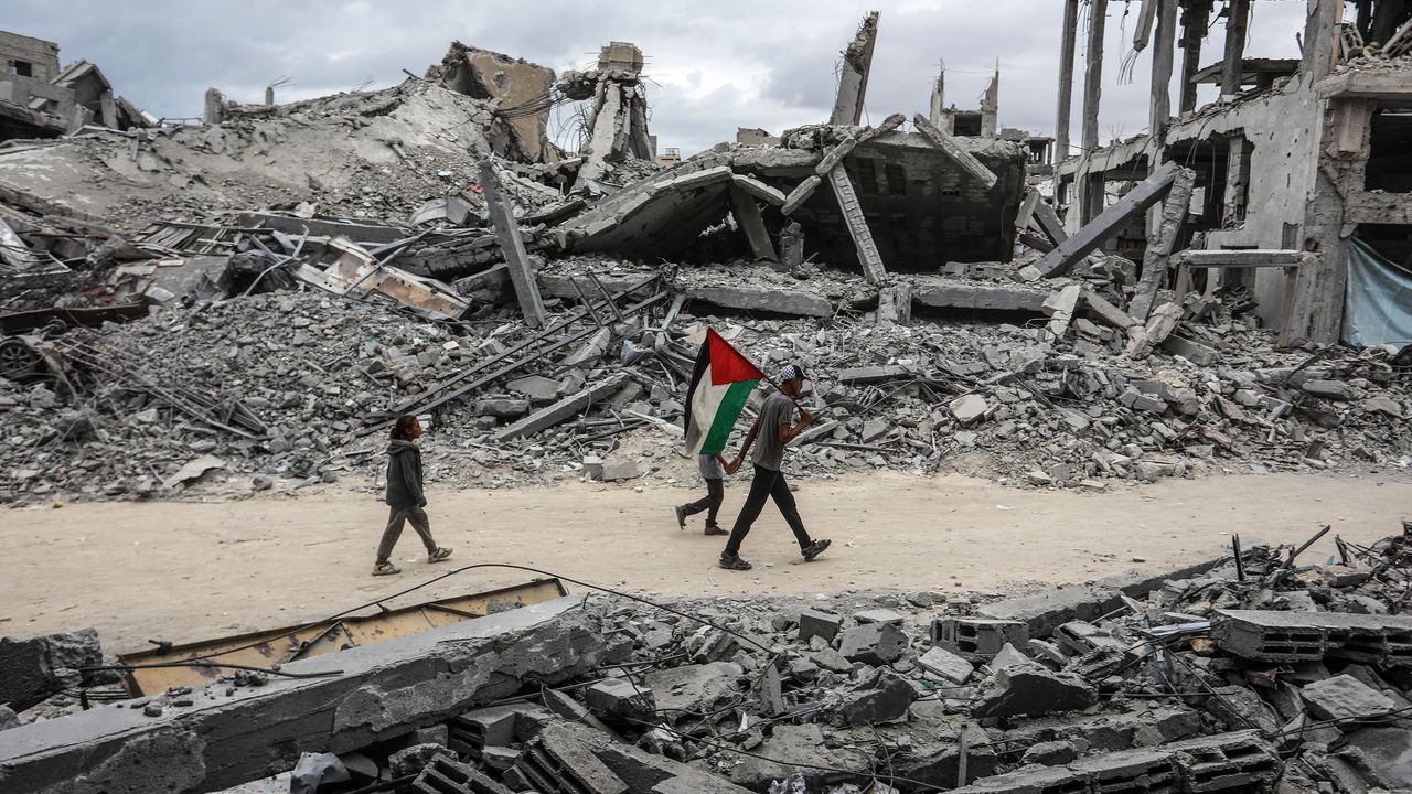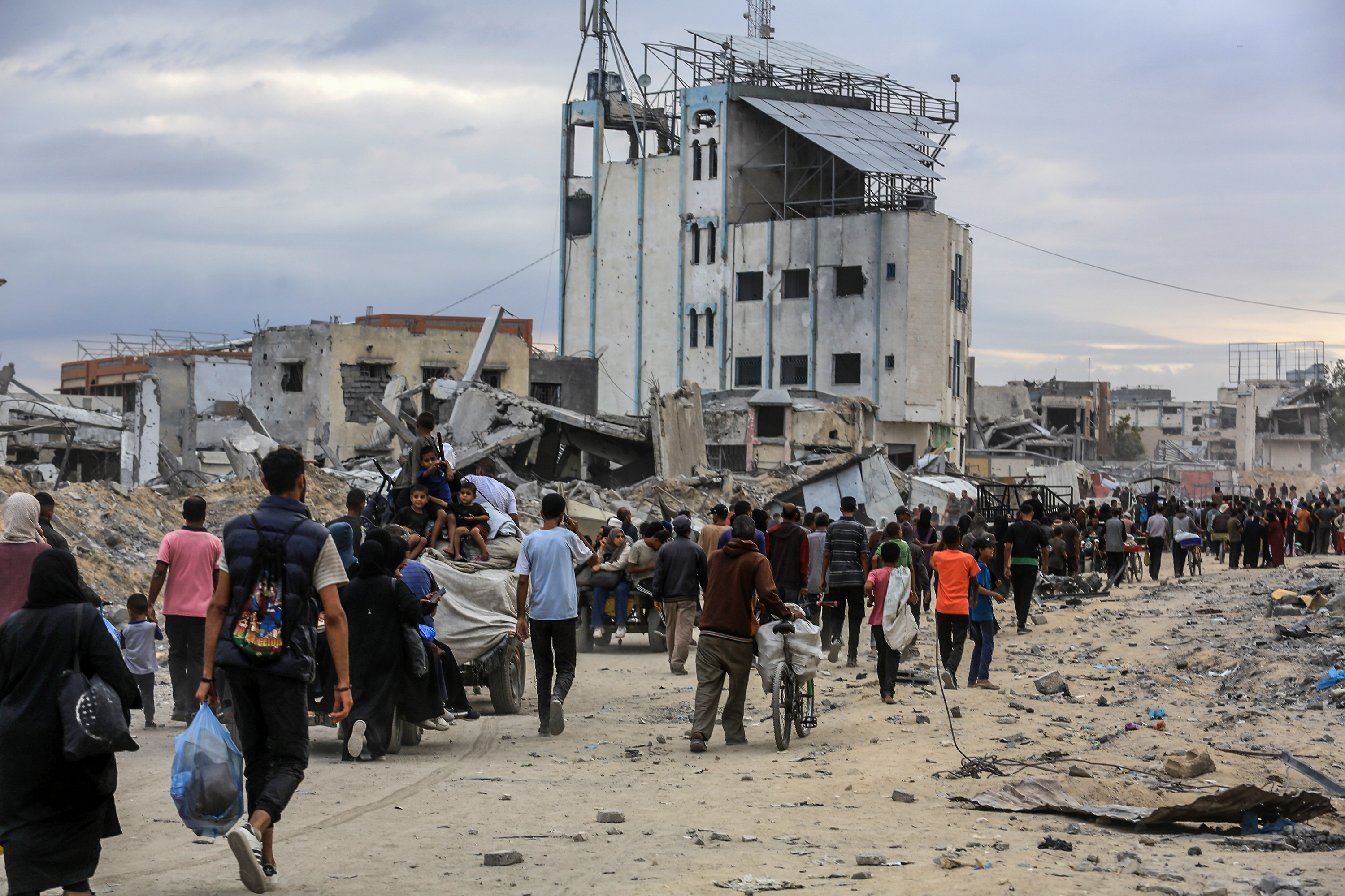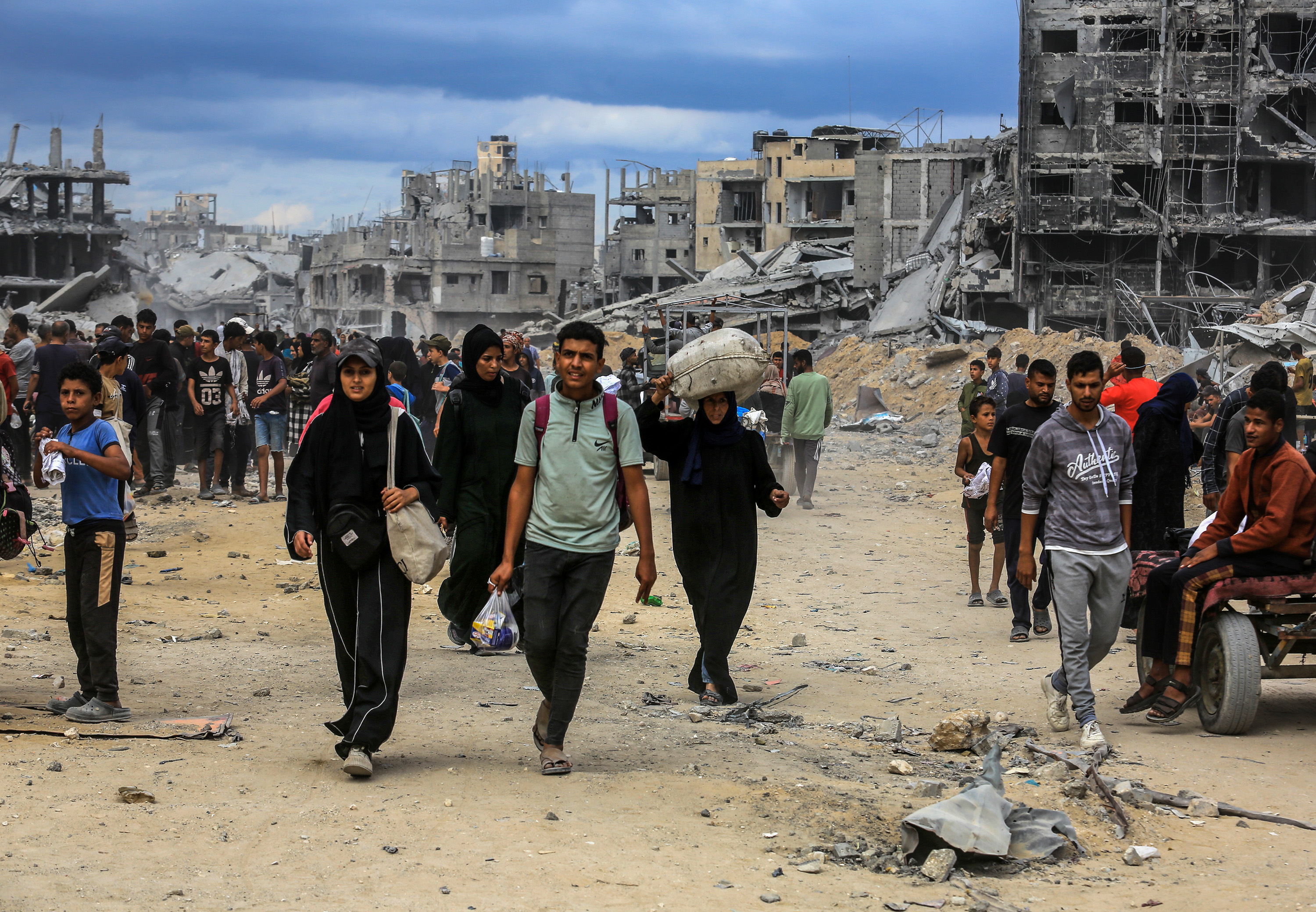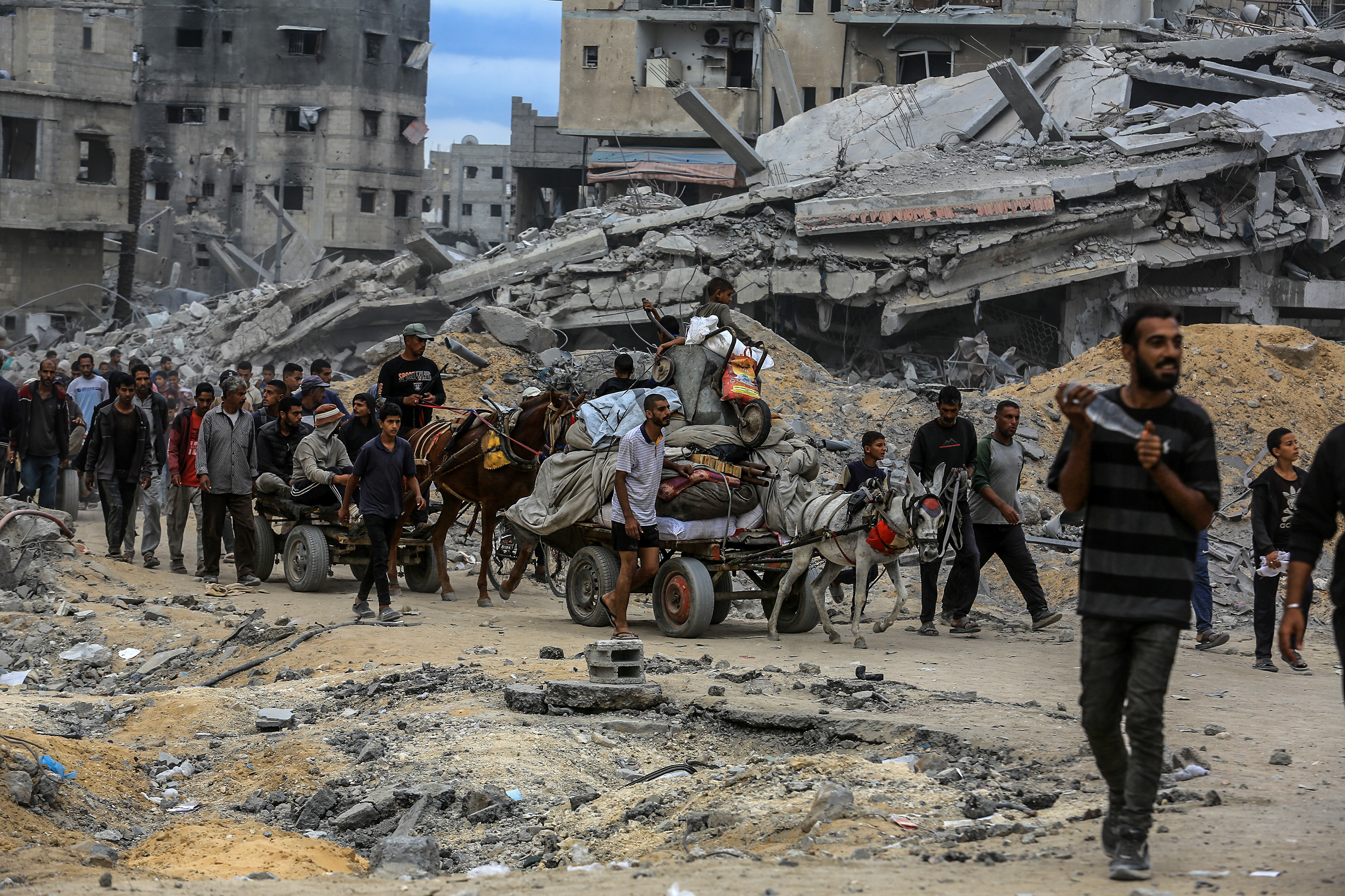 Gazze Şeridi’nin güneyindeki Han Yunus’un doğusunda, İsrail ordusunun çekilmesinin ardından evlerine dönen yerinden edilmiş Filistinliler büyük bir yıkım manzarasıyla karşılaştı.