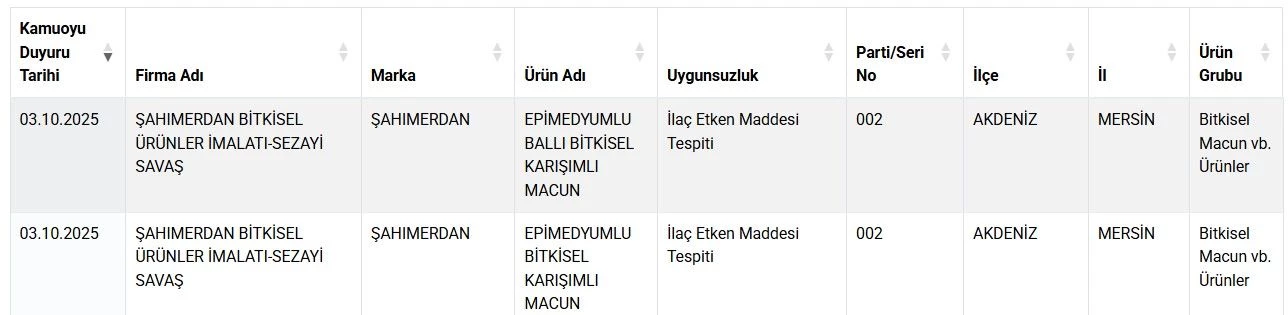 Pekmez ürünlerinde de şeker ilavesi tespiti yapıldı. Bir bitkisel ürün markasında ise ballı bitkisel karışımlı macunda ilaç etken maddesi olduğu belirlendi.