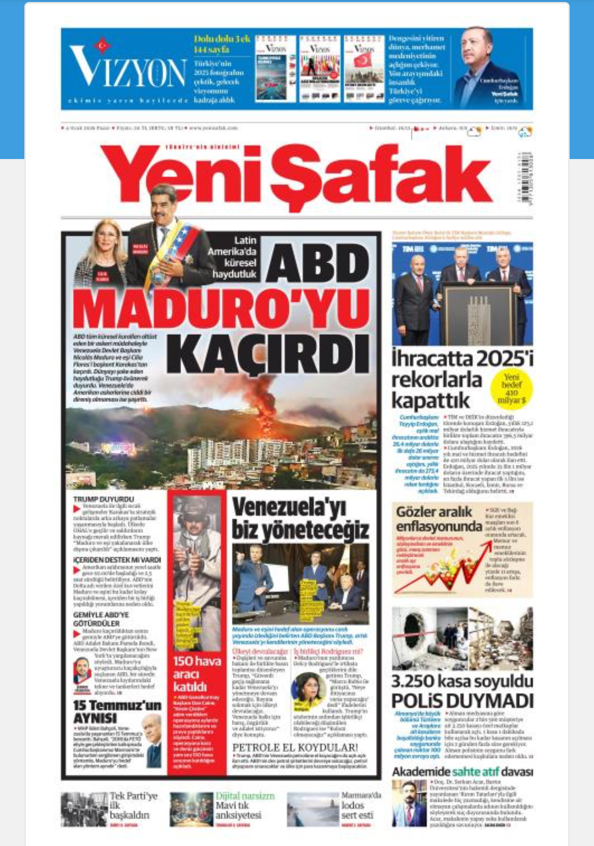 ABD Başkanı Donald Trump, Venezuela'ya saldırılar düzenlediklerini ve ülkenin devlet başkanı Nicolas Maduro'yu ele geçirdiklerini açıkladı. Maduro ve eşi New York’a getirildi. Gazeteler yaşananları nasıl gördü? İşte manşetler..