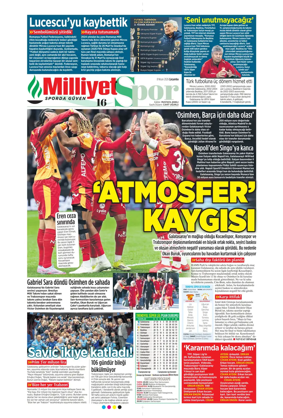 Spor manşetlerinde öne çıkan gelişmeler, transfer iddiaları, Beşiktaş, Fenerbahçe, Galatasaray ve Trabzonspor’un gündemine 1 dakikada göz atın. İşte gazetelerin spor manşetleri…
