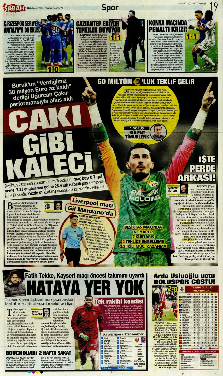 Galatasaray, Trendyol Süper Lig'in 25. haftasında konuk olduğu Beşiktaş'ı Victor Osimhen'in golüyle 1-0 yendi. Beşiktaş, Fenerbahçe, Galatasaray ve Trabzonspor’un gündemine 1 dakikada göz atın. İşte gazetelerin spor manşetleri…
