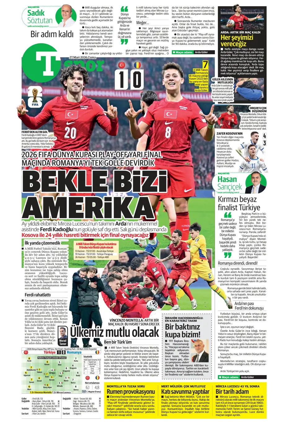 Günün spor manşetleri: 'Bekle bizi Amerika'